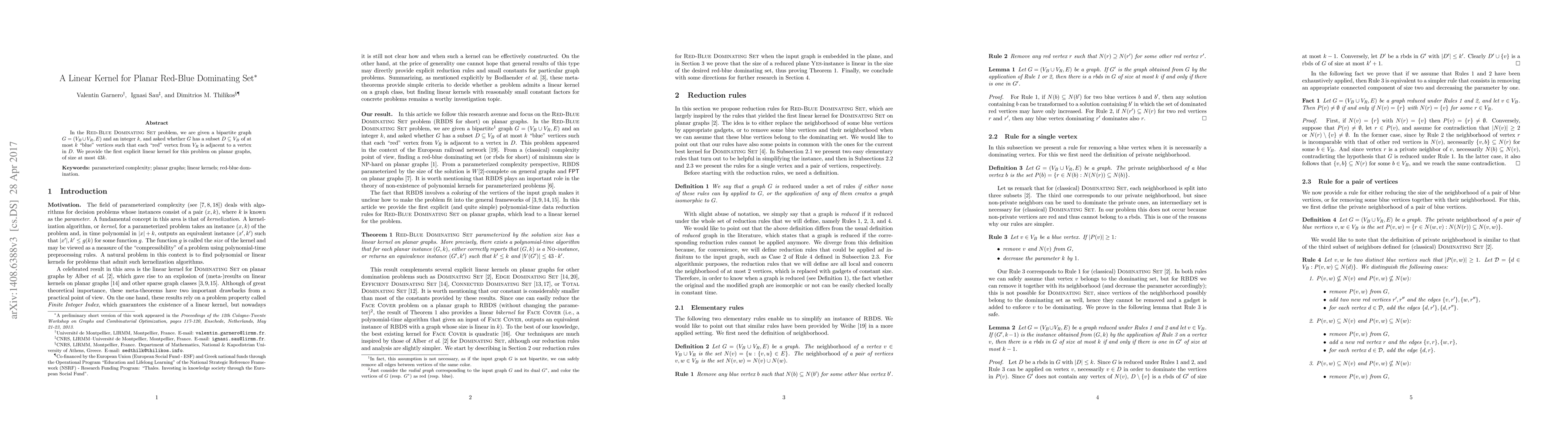The research presents the first explicit linear kernel of size at most 43k for solving the Red-Blue Dominating Set problem on planar bipartite graphs, significantly improving computational efficiency. This linear kernel reduces the problem's parameter while maintaining its complexity.