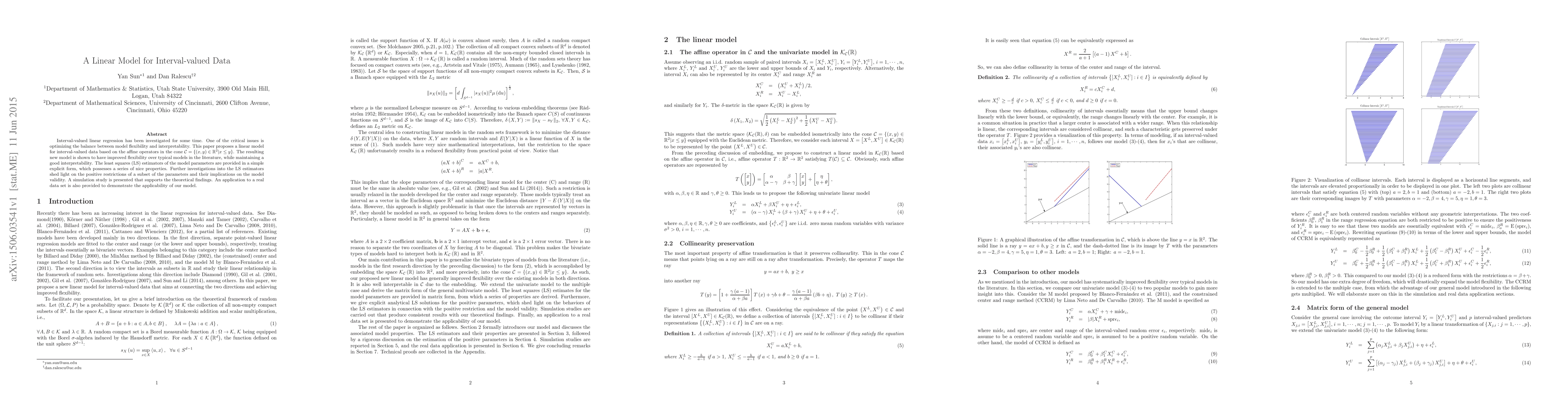 This paper proposes a linear model for interval-valued data using affine operators in the cone $\mathcal{C}$, achieving improved flexibility while maintaining interpretability. The least squares estimators of the model parameters are explicitly derived and shown to have positive restrictions, enhancing model validity.