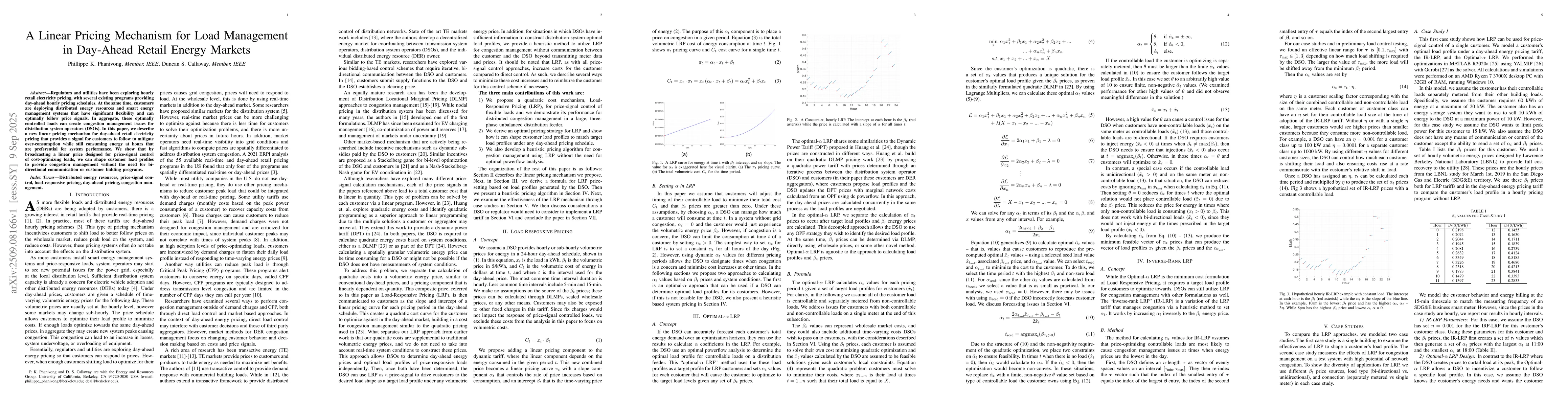 Regulators and utilities have been exploring hourly retail electricity pricing, with several existing programs providing day-ahead hourly pricing schedules. At the same time, customers are deploying distributed energy resources and smart energy management systems that have significant flexibility and can optimally follow price signals. In aggregate, these optimally controlled loads can create congestion management issues for distribution system operators (DSOs). In this paper, we describe a new linear pricing mechanism for day-ahead retail electricity pricing that provides a signal for customers to follow to mitigate over-consumption while still consuming energy at hours that are preferential for system performance. We show that by broadcasting a linear price designed for price-signal control of cost-optimizing loads, we can shape customer load profiles to provide congestion management without the need for bi-directional communication or customer bidding programs.