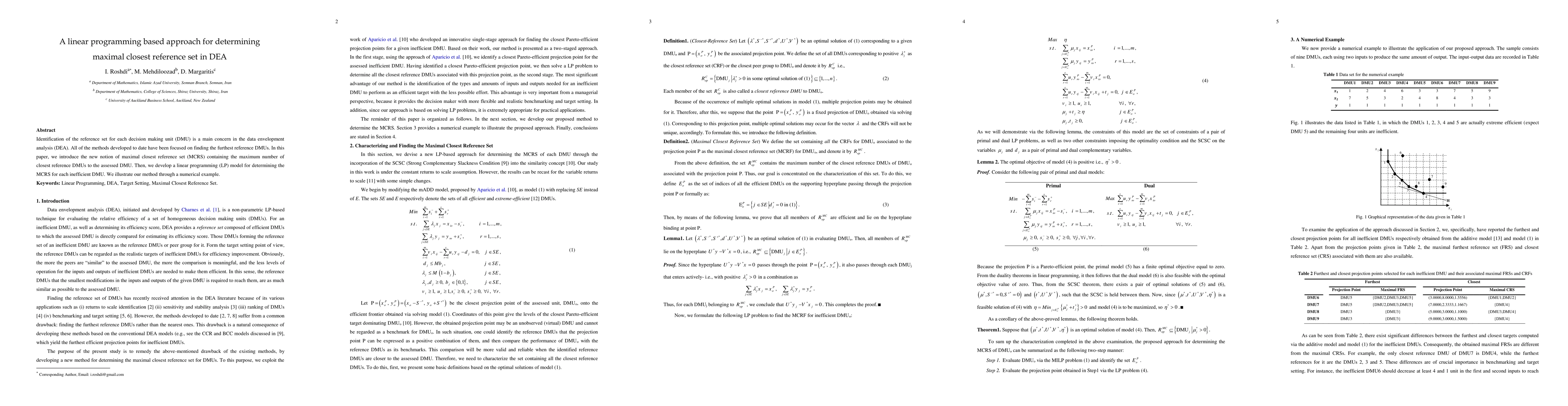 This paper presents a linear programming approach to determine the maximal closest reference set (MCRS) in data envelopment analysis (DEA), focusing on identifying the closest rather than the furthest reference decision making units (DMUs) to each assessed DMU. A numerical example demonstrates the effectiveness of the proposed linear programming model.