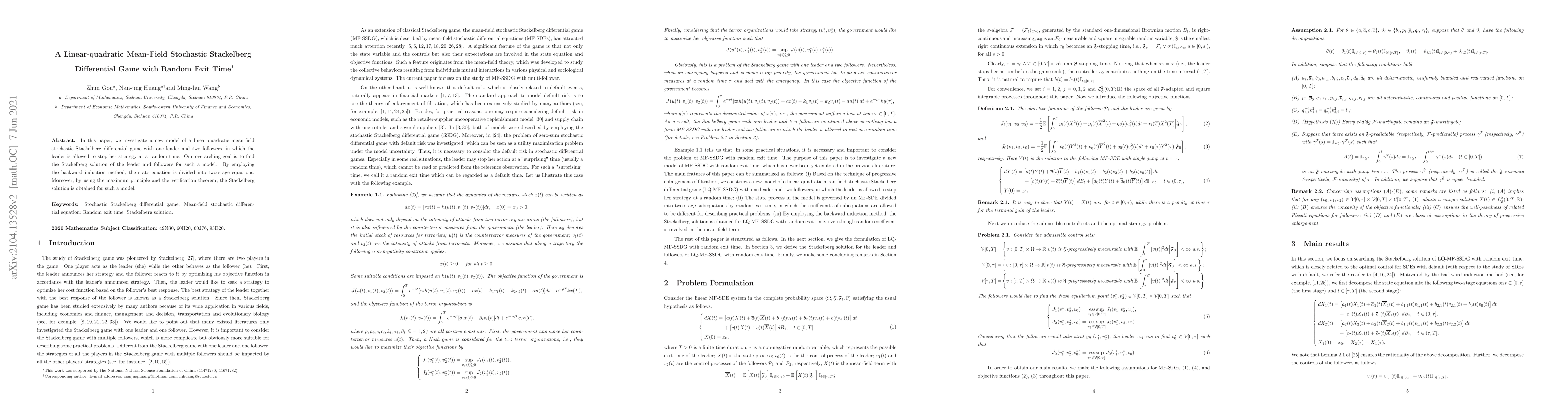 This paper explores a linear-quadratic mean-field stochastic Stackelberg differential game with a leader and two followers, where the leader can exit at a random time. The authors aim to find the Stackelberg solution using backward induction, the maximum principle, and the verification theorem.