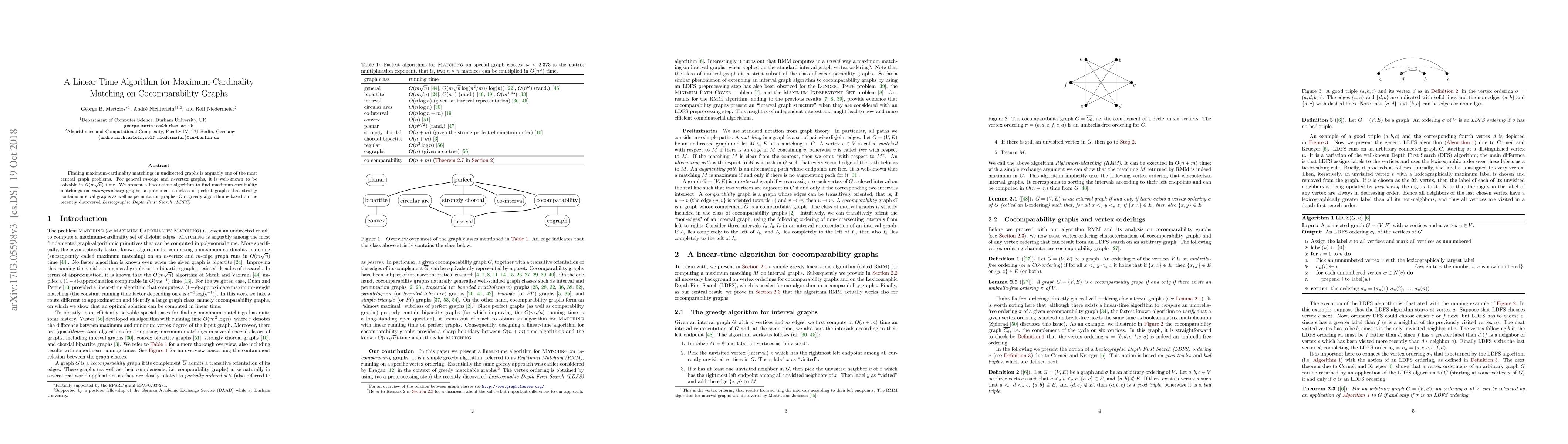 This paper presents a linear-time algorithm for finding maximum-cardinality matchings on cocomparability graphs, leveraging Lexicographic Depth First Search (LDFS) to achieve the optimal time complexity for this subclass of perfect graphs. This approach significantly improves upon the $O(m \sqrt{n})$ time complexity for general graphs.