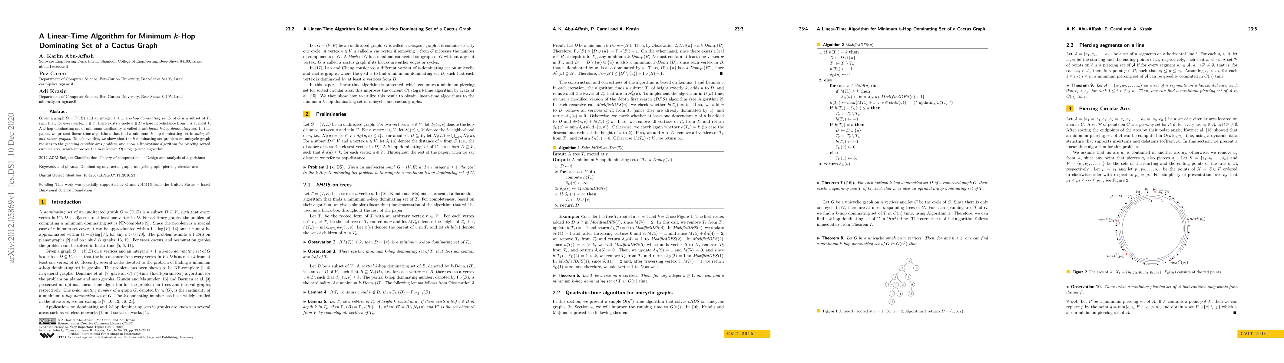 Summary: The paper introduces linear-time algorithms for finding a minimum $k$-hop dominating set in unicyclic and cactus graphs, reducing the $k$-dominating set problem on unicycle graphs to the piercing circular arcs problem and presenting an improved linear-time solution for the latter.