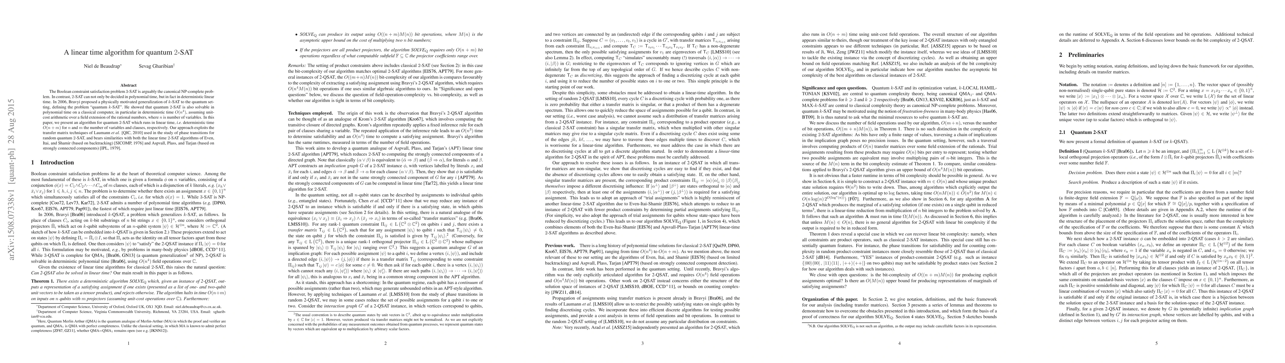 This paper presents a linear time algorithm for solving quantum 2-SAT, achieving deterministic time O(n+m) where n is the number of variables and m the number of clauses. The approach leverages transfer matrix techniques and shares similarities with classical linear time algorithms for 2-SAT.