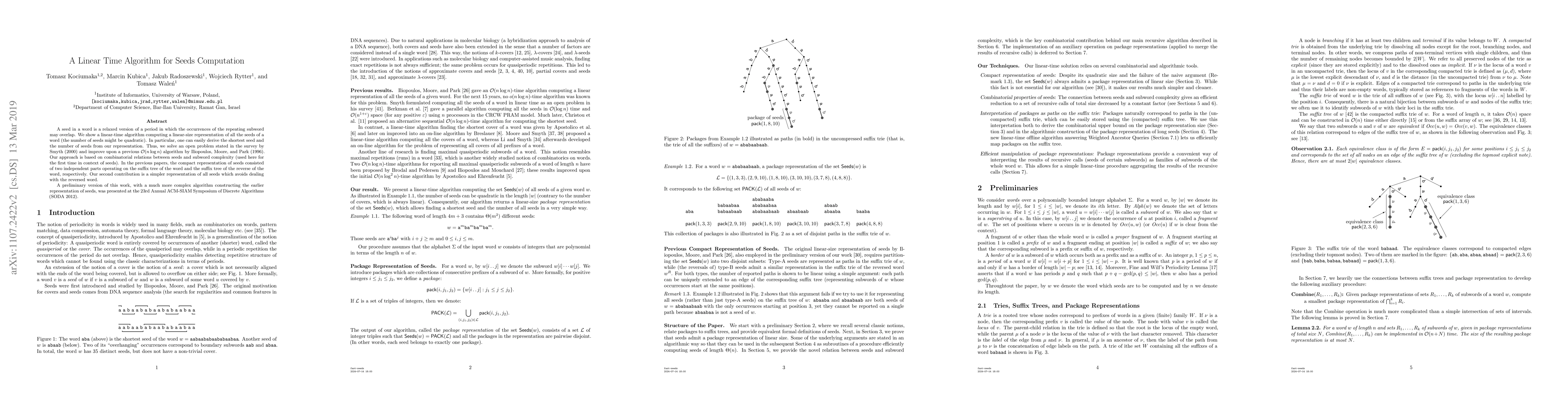 A seed in a word is a relaxed version of a period in which the occurrences of the repeating subword may overlap. We show a linear-time algorithm computing a linear-size representation of all the seeds of a word (the number of seeds might be quadratic). In particular, one can easily derive the shortest seed and the number of seeds from our representation. Thus, we solve an open problem stated in the survey by Smyth (2000) and improve upon a previous O(n log n) algorithm by Iliopoulos, Moore, and Park (1996). Our approach is based on combinatorial relations between seeds and subword complexity (used here for the first time in context of seeds). In the previous papers, the compact representation of seeds consisted of two independent parts operating on the suffix tree of the word and the suffix tree of the reverse of the word, respectively. Our second contribution is a simpler representation of all seeds which avoids dealing with the reversed word. A preliminary version of this work, with a much more complex algorithm constructing the earlier representation of seeds, was presented at the 23rd Annual ACM-SIAM Symposium of Discrete Algorithms (SODA 2012).
