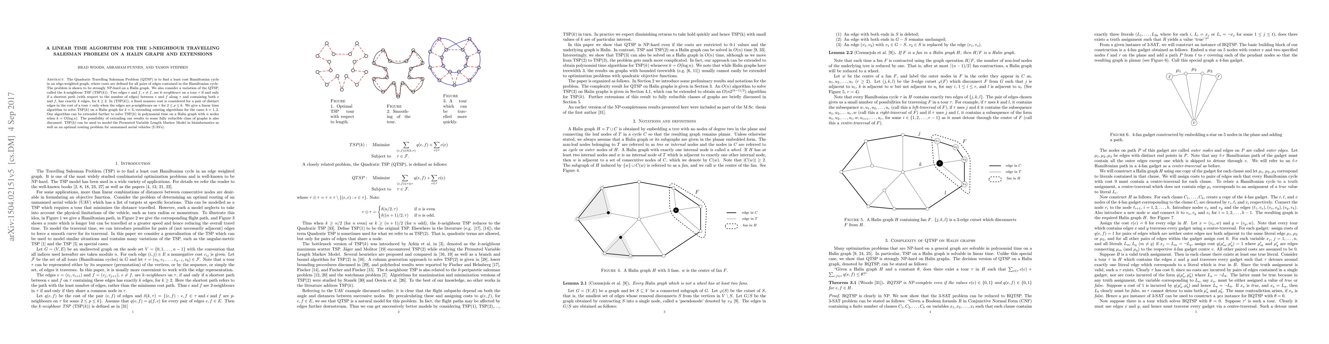 The Quadratic Travelling Salesman Problem (QTSP) is to find a least cost Hamilton cycle in an edge-weighted graph, where costs are defined on all pairs of edges contained in the Hamilton cycle. This is a more general version than the commonly studied QTSP which only considers pairs of adjacent edges. We define a restricted version of QTSP, the $k$-neighbour TSP (TSP($k$)), and give a linear time algorithm to solve TSP($k$) on a Halin graph for $k\leq 3$. This algorithm can be extended to solve TSP($k$) on any fully reducible class of graphs for any fixed $k$ in polynomial time. This result generalizes corresponding results for the standard TSP. TSP($k$) can be used to model various machine scheduling problems as well as an optimal routing problem for unmanned aerial vehicles (UAVs).