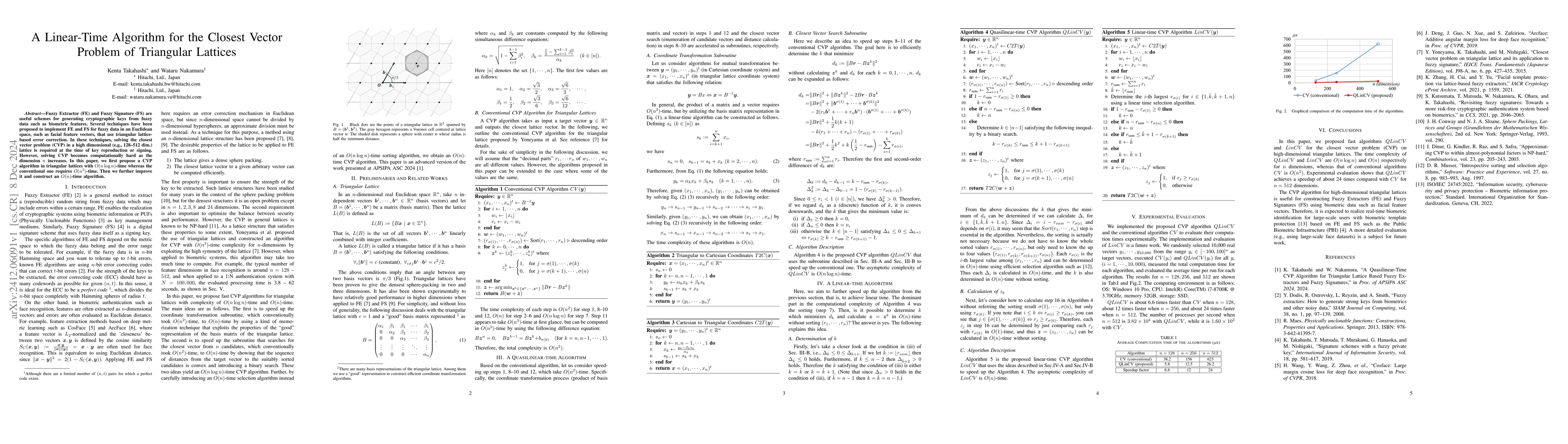 Fuzzy Extractor (FE) and Fuzzy Signature (FS) are useful schemes for generating cryptographic keys from fuzzy data such as biometric features. Several techniques have been proposed to implement FE and FS for fuzzy data in an Euclidean space, such as facial feature vectors, that use triangular lattice-based error correction. In these techniques, solving the closest vector problem (CVP) in a high dimensional (e.g., 128--512 dim.) lattice is required at the time of key reproduction or signing. However, solving CVP becomes computationally hard as the dimension $n$ increases. In this paper, we first propose a CVP algorithm in triangular lattices with $O(n \log n)$-time whereas the conventional one requires $O(n^2)$-time. Then we further improve it and construct an $O(n)$-time algorithm.