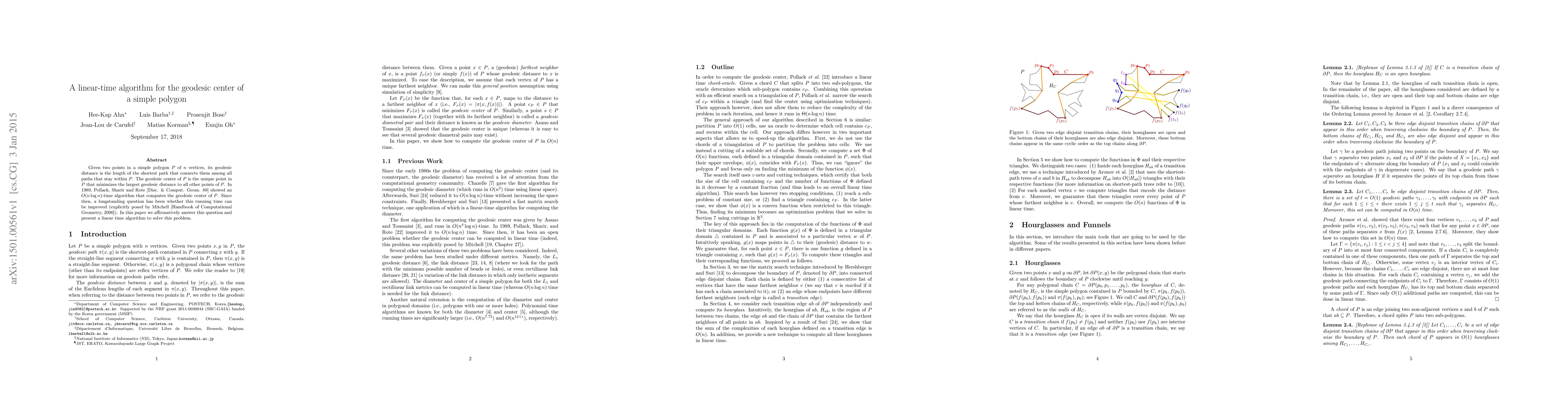 This paper presents a linear-time algorithm for computing the geodesic center of a simple polygon, improving upon the previous $O(n\log n)$-time algorithm. This advancement addresses a longstanding question in computational geometry.