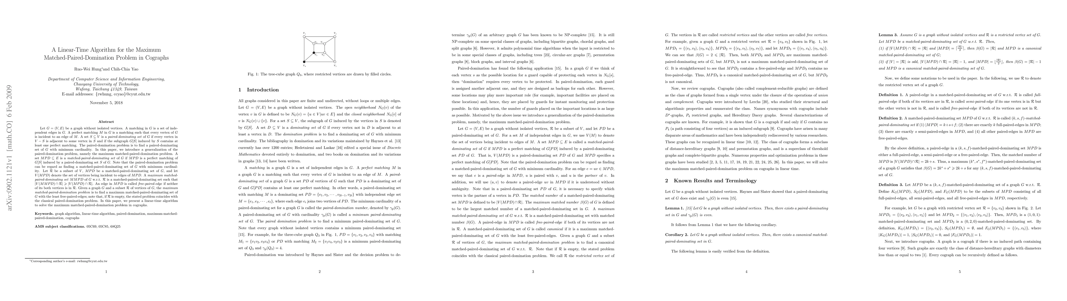 Let $G=(V,E)$ be a graph without isolated vertices. A matching in $G$ is a set of independent edges in $G$. A perfect matching $M$ in $G$ is a matching such that every vertex of $G$ is incident to an edge of $M$. A set $S\subseteq V$ is a \textit{paired-dominating set} of $G$ if every vertex in $V-S$ is adjacent to some vertex in $S$ and if the subgraph $G[S]$ induced by $S$ contains at least one perfect matching. The paired-domination problem is to find a paired-dominating set of $G$ with minimum cardinality. A set $MPD\subseteq E$ is a \textit{matched-paired-dominating set} of $G$ if $MPD$ is a perfect matching of $G[S]$ induced by a paired-dominating set $S$ of $G$. Note that the paired-domination problem can be regard as finding a matched-paired-dominating set of $G$ with minimum cardinality. Let $\mathcal{R}$ be a subset of $V$, $MPD$ be a matched-paired-dominating set of $G$, and let $V(MPD)$ denote the set of vertices being incident to edges of $MPD$. A \textit{maximum matched-paired-dominating set} $MMPD$ of $G$ w.r.t. $\mathcal{R}$ is a matched-paired-dominating set such that $|V(MMPD)\cap \mathcal{R}|\geqslant |V(MPD)\cap \mathcal{R}|$. An edge in $MPD$ is called \textit{free-paired-edge} if neither of its both vertices is in $\mathcal{R}$. Given a graph $G$ and a subset $\mathcal{R}$ of vertices of $G$, the \textit{maximum matched-paired-domination problem} is to find a maximum matched-paired-dominating set of $G$ with the least free-paired-edges; note that, if $\mathcal{R}$ is empty, the stated problem coincides with the classical paired-domination problem. In this paper, we present a linear-time algorithm to solve the maximum matched-paired-domination problem in cographs.