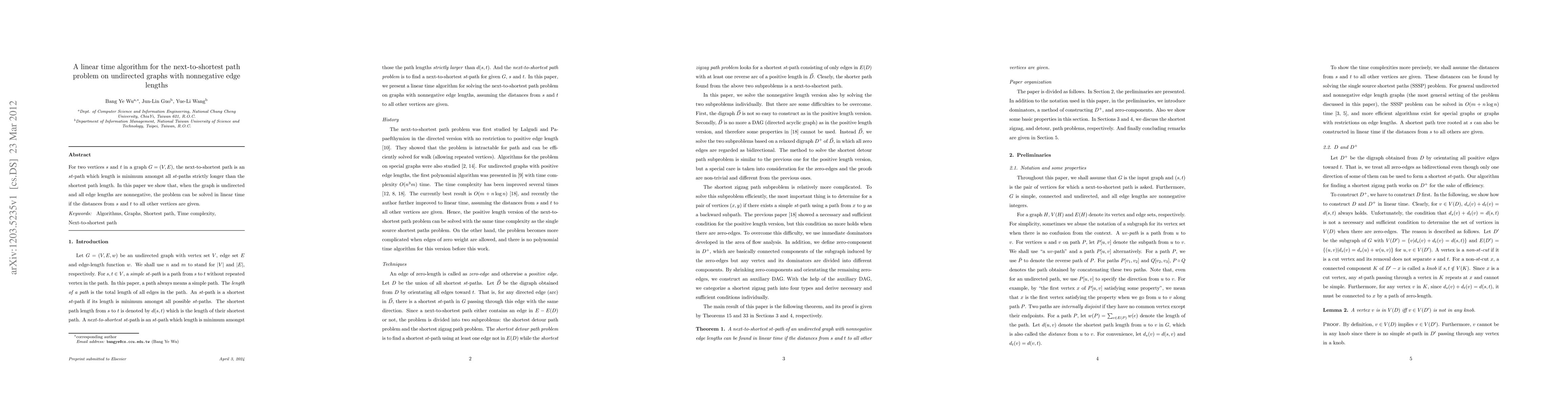 This paper presents a linear time algorithm for finding the next-to-shortest path in undirected graphs with nonnegative edge lengths, extending previous work to include zero-length edges when the shortest path distances from two vertices are known.