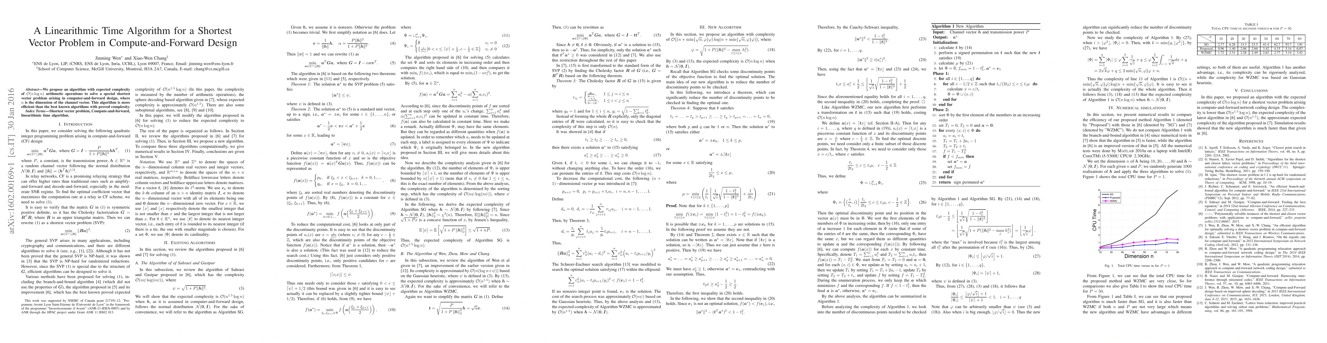 We propose an algorithm with expected complexity of $\bigO(n\log n)$ arithmetic operations to solve a special shortest vector problem arising in computer-and-forward design, where $n$ is the dimension of the channel vector. This algorithm is more efficient than the best known algorithms with proved complexity.