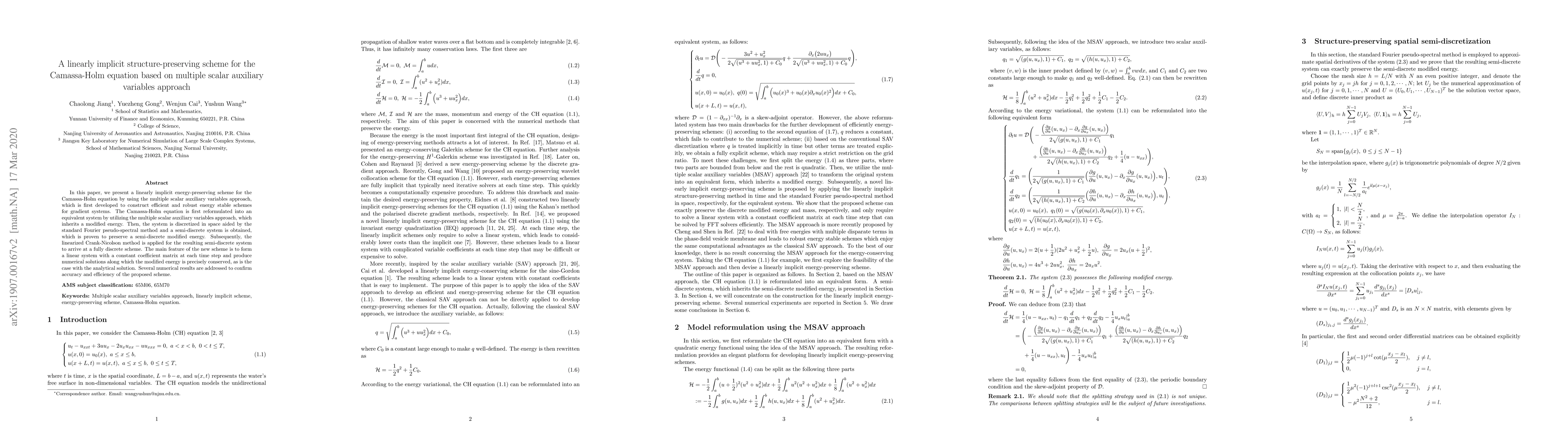 This paper introduces a linearly implicit, energy-preserving scheme for the Camassa-Holm equation using the multiple scalar auxiliary variables approach, which reformulates the equation to preserve a modified energy. The method employs the Fourier pseudo-spectral method and Crank-Nicolson scheme to achieve a fully discrete scheme that conserves the modified energy numerically.