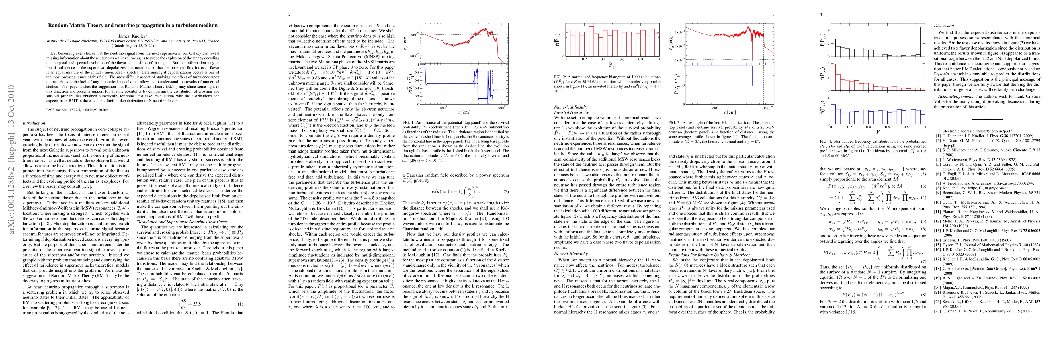 It is becoming ever clearer that the neutrino signal from the next supernova in our Galaxy can reveal missing information about the neutrino as well as allowing us to probe the explosion of the star by decoding the temporal and spectral evolution of the flavor composition of the signal. But this information may be lost if turbulence in the supernova `depolarizes' the neutrinos so that the observed flux for each flavor is an equal mixture of the initial - unencoded - spectra. Determining if depolarization occurs is one of the most pressing issues of this field. The most difficult aspect of studying the effect of turbulence upon the neutrinos is the lack of any theoretical models that allow us to understand the results of numerical studies. This paper makes the suggestion that Random Matrix Theory (RMT) may shine some light in this direction and presents support for this the possibility by comparing the distribution of crossing and survival probabilities obtained numerically for some `test case' calculations with the distributions one expects from RMT in the calculable limit of depolarization of N neutrino flavors.