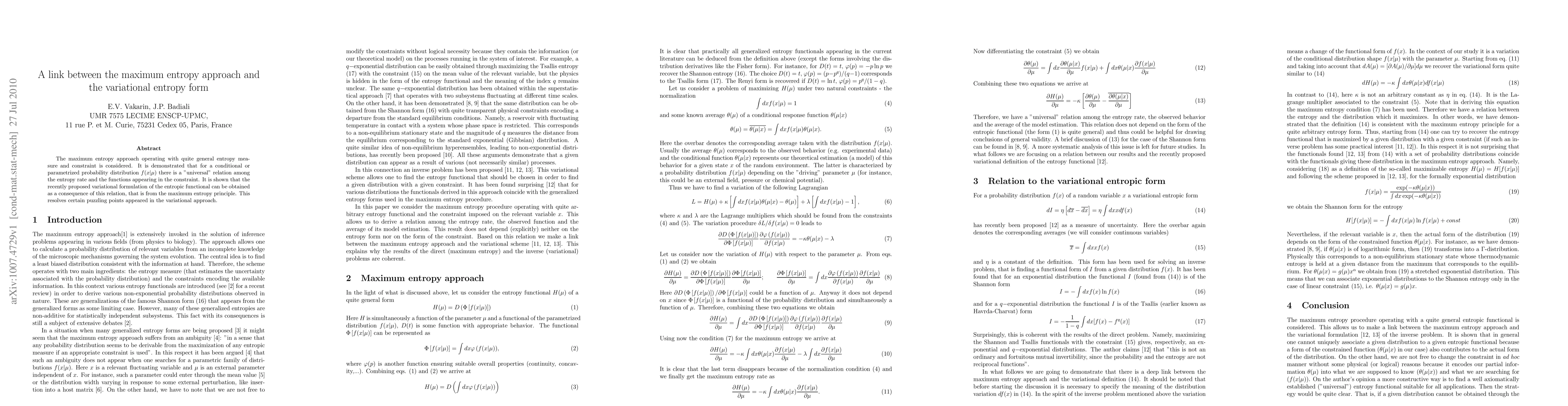 This paper establishes a connection between the maximum entropy approach and the variational entropy formulation, demonstrating a universal relation between entropy and constraints that leads to the derivation of the variational entropic functional from the maximum entropy principle, thereby resolving some ambiguities in the variational approach.