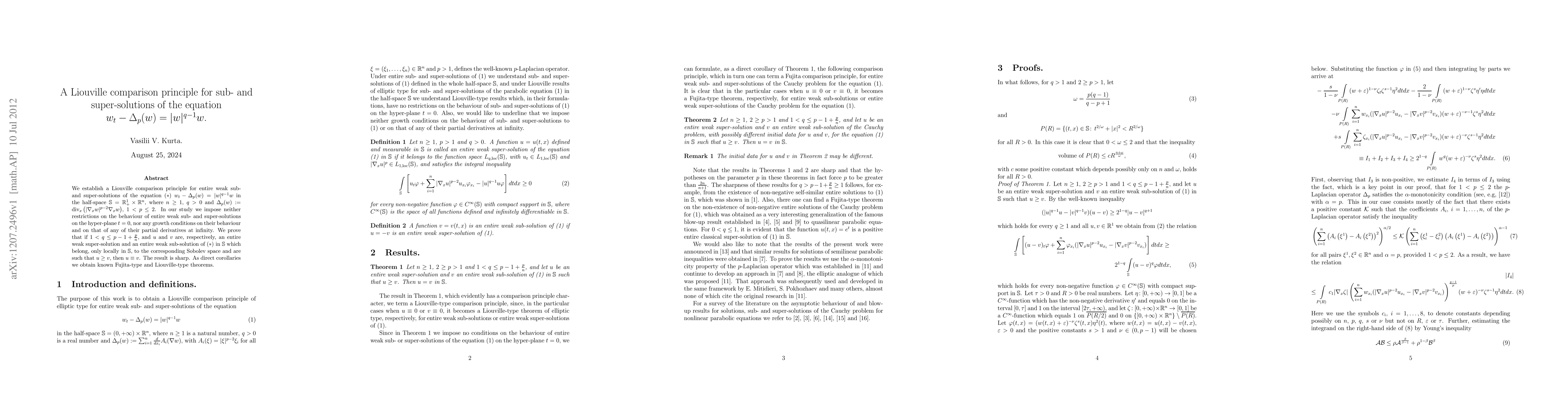 We establish a Liouville comparison principle for entire weak sub- and super-solutions of the equation $(\ast)$ $w_t-\Delta_p (w) = |w|^{q-1}w$ in the half-space ${\mathbb S}= {\mathbb R}^1_+\times {\mathbb R}^n$, where $n\geq 1$, $q>0$ and $ \Delta_p (w):={div}_x(|\nabla_x w|^{p-2}\nabla_x w)$, $1
