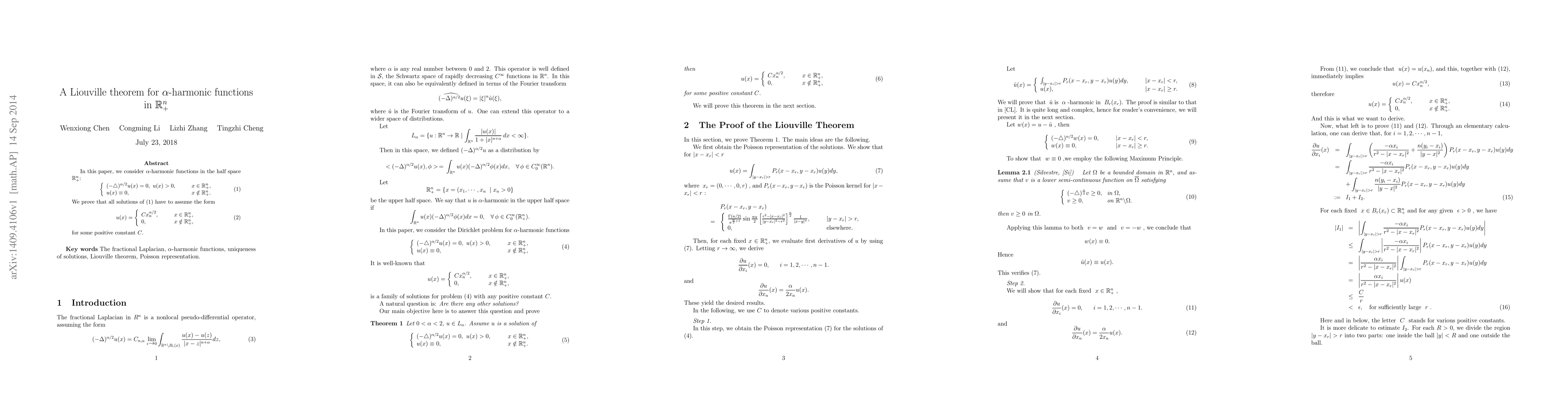 In this paper, we consider $\alpha$-harmonic functions in the half space $\mathbb{R}^n_+$: \begin{equation} \left\{\begin{array}{ll} (-\Delta)^{\alpha/2} u(x)=0,~u(x)>0, & x\in\mathbb{R}^n_+, \\ u(x)\equiv 0, & x\notin \mathbb{R}^{n}_{+}. \end{array}\right. \end{equation} We prove that all the solutions have to assume the form \begin{equation} u(x)=\left\{\begin{array}{ll}Cx_n^{\alpha/2}, & \qquad x\in\mathbb{R}^n_+, \\ 0, & \qquad x\notin\mathbb{R}^{n}_{+}, \end{array}\right. \label{2} \end{equation} for some positive constant $C$.