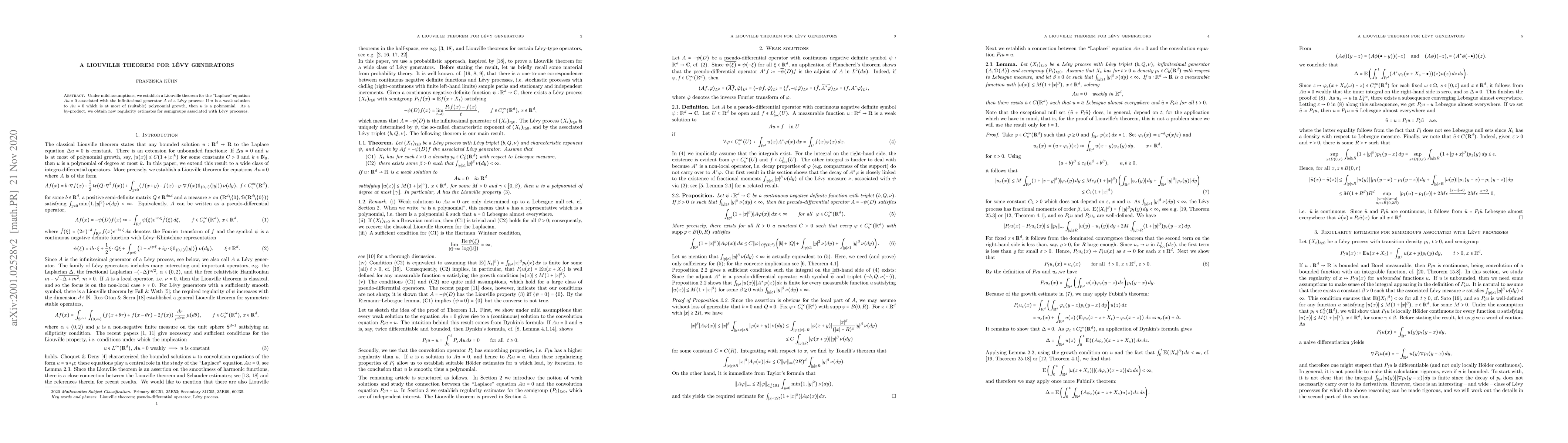 A Liouville theorem for Lévy generators establishes that a weak solution to the Laplace equation is a polynomial if it grows at most like a suitable polynomial, providing new regularity estimates for semigroups associated with Lévy processes.