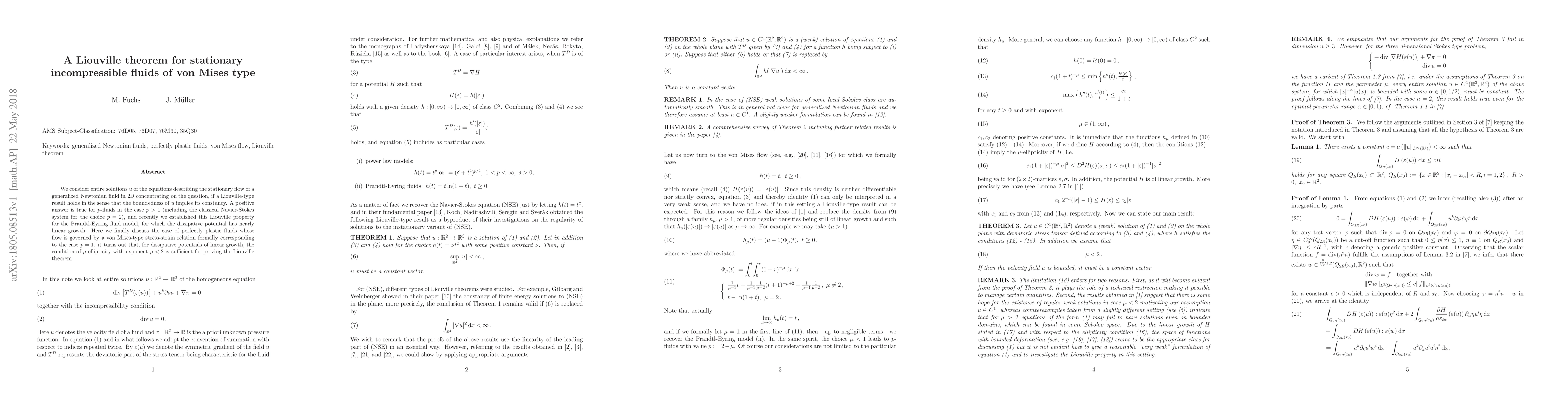 Researchers establish a Liouville theorem for stationary incompressible fluids of von Mises type, proving that boundedness implies constancy for perfectly plastic fluids with linearly growing dissipative potentials.