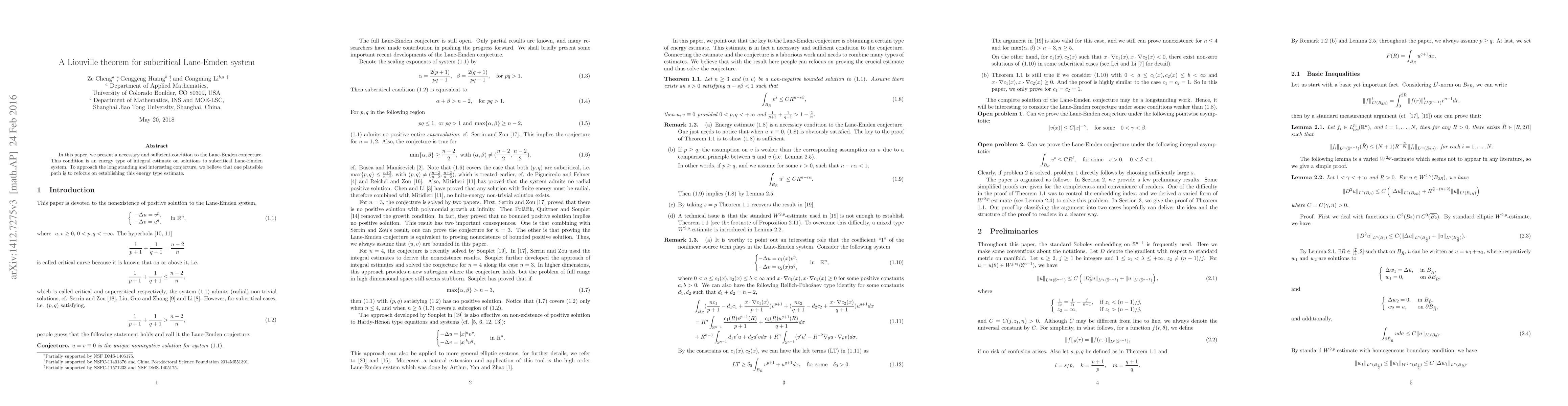 In this paper, we present a necessary and sufficient condition to the Lane-Emden conjecture. This condition is an energy type of integral estimate on solutions to subcritical Lane-Emden system. To approach the long standing and interesting conjecture, we believe that one plausible path is to refocus on establishing this energy type estimate.