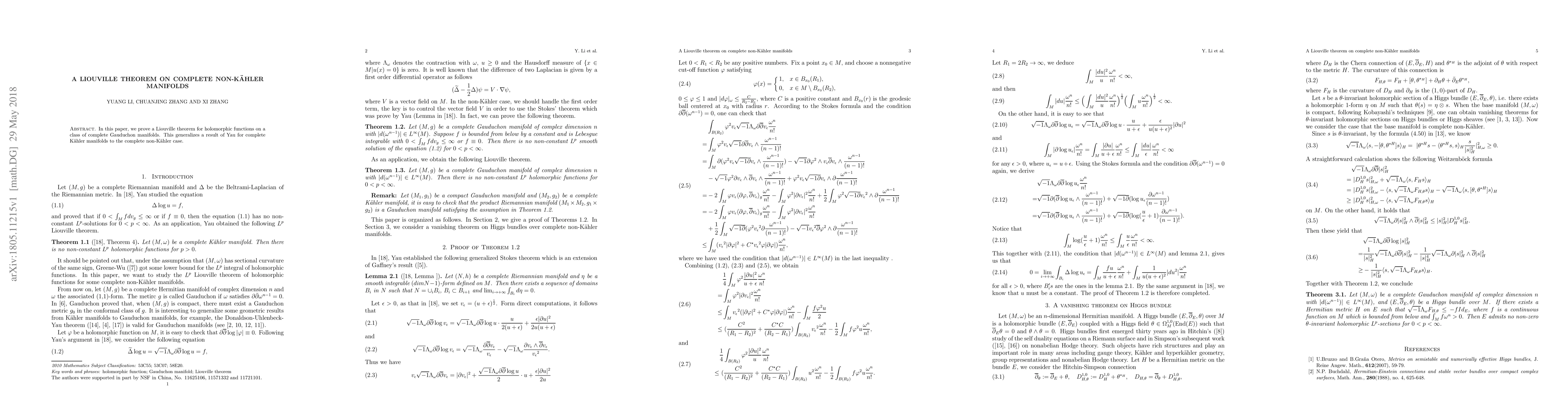 This paper establishes a Liouville theorem for holomorphic functions on complete Gauduchon manifolds, extending Yau's result from complete Kähler to the broader setting of complete non-Kähler manifolds.
