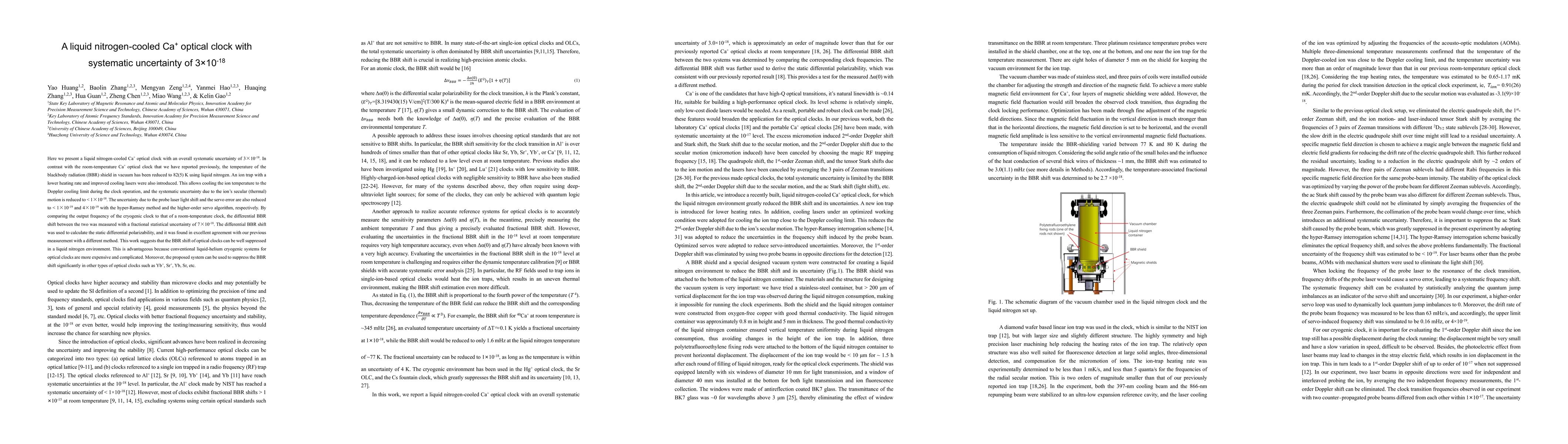 This paper presents a liquid nitrogen-cooled Ca^+ optical clock achieving a systematic uncertainty of 3*10^-18, significantly improved from previous room-temperature models. The reduced temperature of the blackbody radiation shield and enhanced cooling techniques lead to a lower overall uncertainty and effective suppression of the blackbody radiation shift.