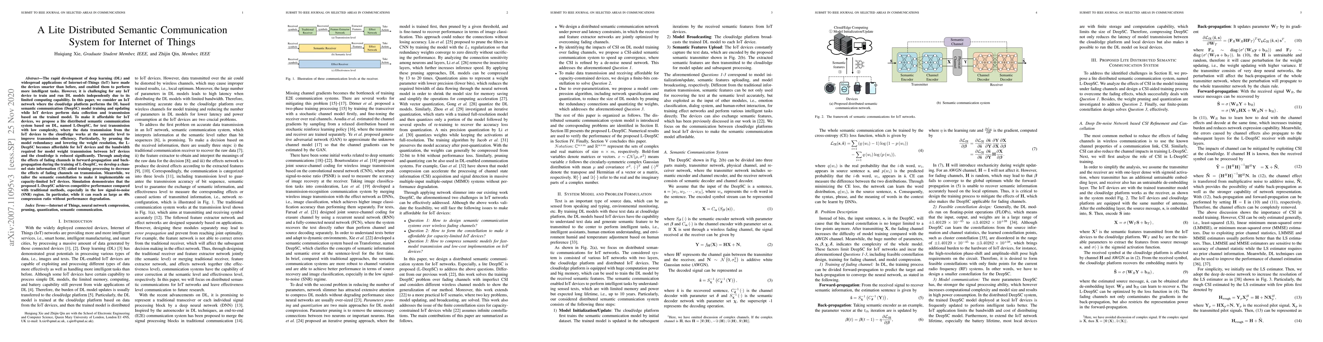 This paper proposes L-DeepSC, a lite distributed semantic communication system leveraging deep learning for IoT networks, which offloads model training to cloud/edge platforms while enabling IoT devices to perform efficient low-complexity data transmission. The system achieves significant bandwidth reduction and maintains performance by pruning model redundancy and using CSI-aided training.