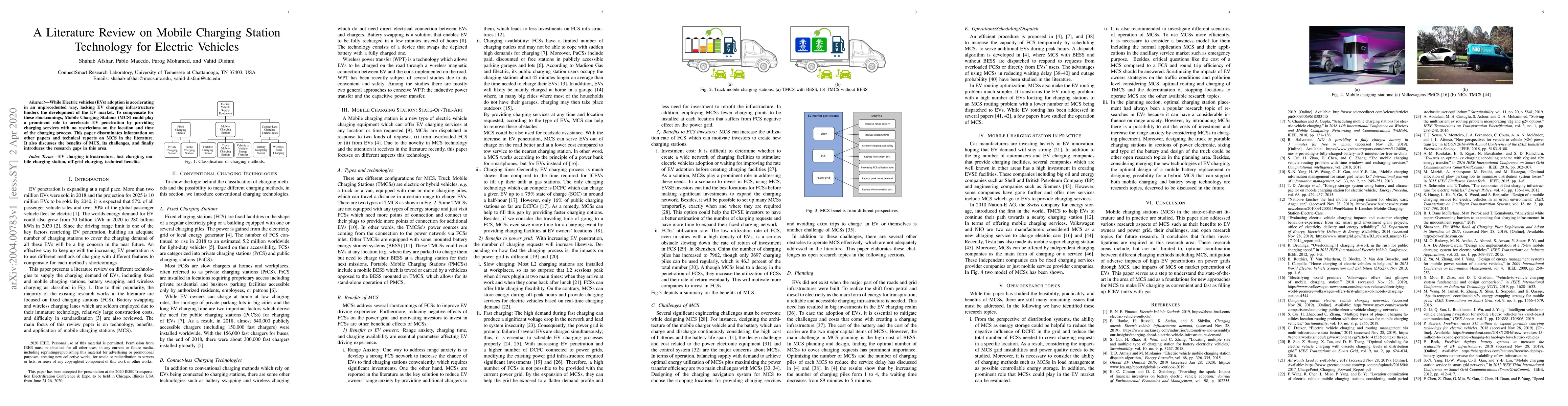 This literature review explores Mobile Charging Stations (MCS) for Electric Vehicles (EVs), highlighting their potential in overcoming infrastructure limitations. It summarizes benefits, challenges, and research gaps identified in existing studies on MCS technology.