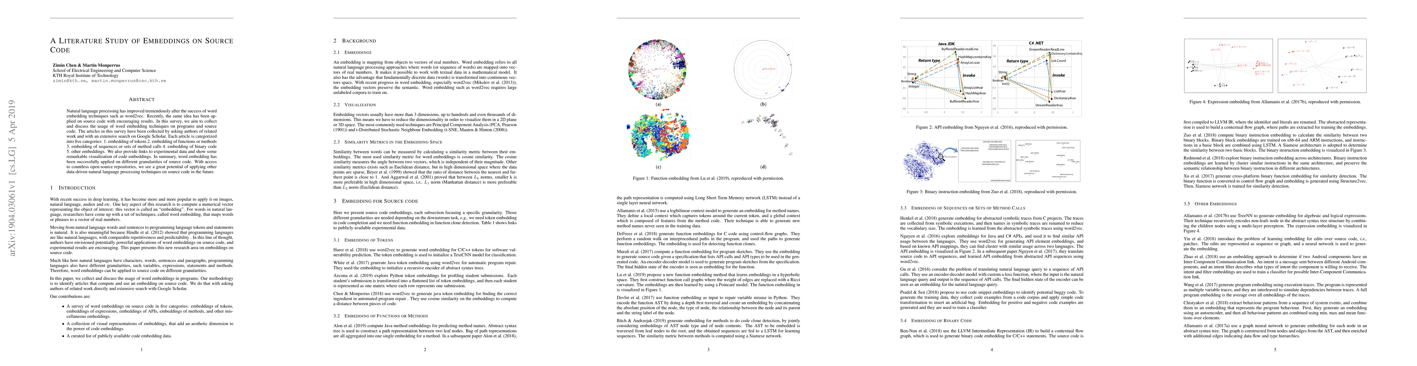 This literature study surveys the application of word embedding techniques to source code, categorizing them into five types based on granularity. It highlights the potential of these embeddings for future data-driven natural language processing in software development.