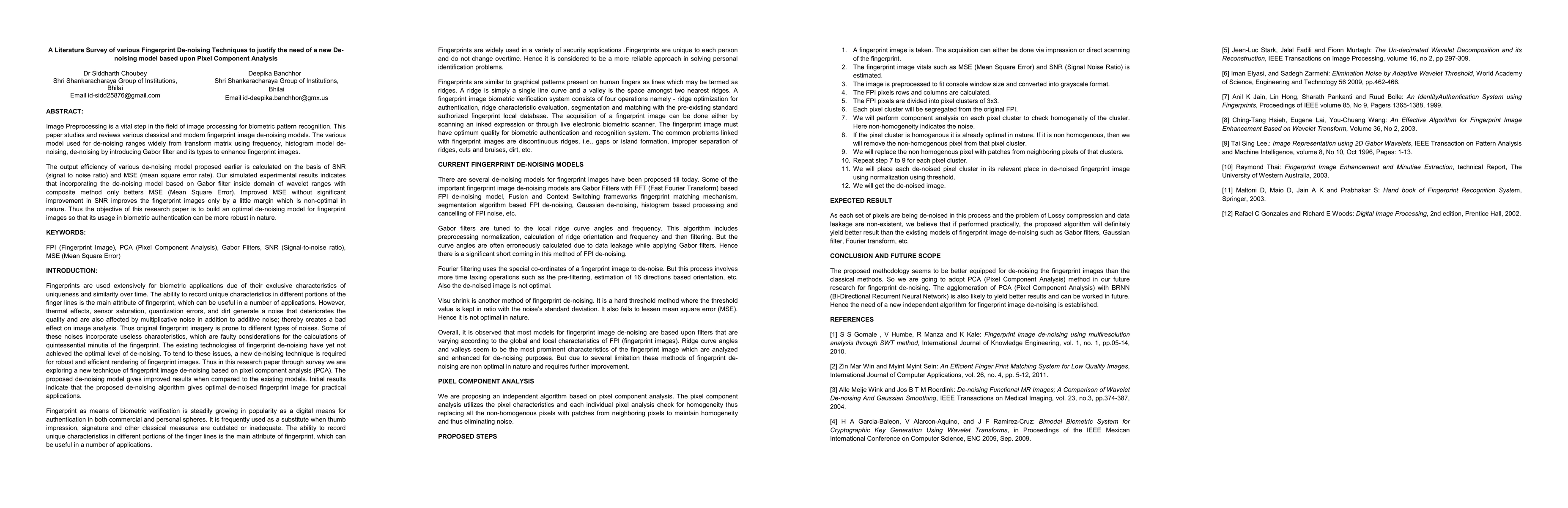 This paper reviews various fingerprint de-noising techniques, evaluating their effectiveness based on SNR and MSE. It concludes that existing models, especially those using Gabor filters, offer only marginal improvements, prompting the development of a new de-noising model based on pixel component analysis for more robust biometric authentication.