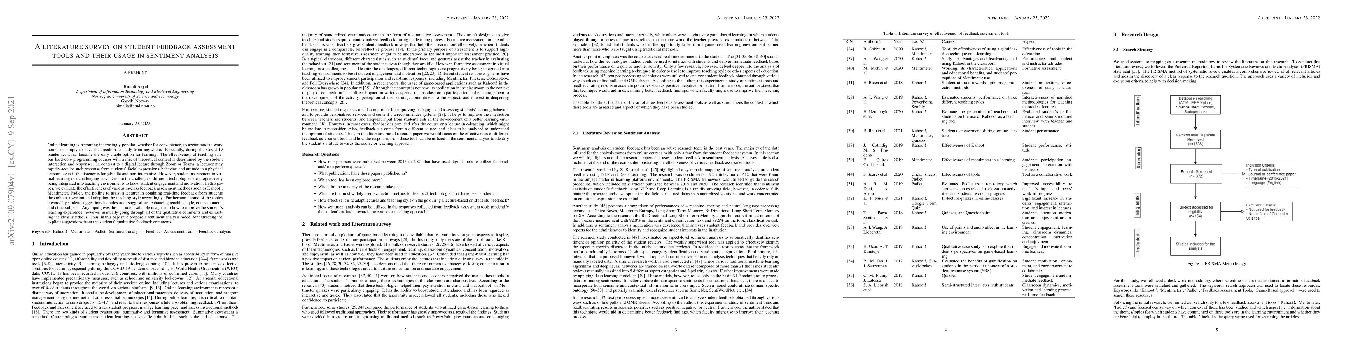 Online learning is becoming increasingly popular, whether for convenience, to accommodate work hours, or simply to have the freedom to study from anywhere. Especially, during the Covid-19 pandemic, it has become the only viable option for learning. The effectiveness of teaching various hard-core programming courses with a mix of theoretical content is determined by the student interaction and responses. In contrast to a digital lecture through Zoom or Teams, a lecturer may rapidly acquire such responses from students' facial expressions, behavior, and attitude in a physical session, even if the listener is largely idle and non-interactive. However, student assessment in virtual learning is a challenging task. Despite the challenges, different technologies are progressively being integrated into teaching environments to boost student engagement and motivation. In this paper, we evaluate the effectiveness of various in-class feedback assessment methods such as Kahoot!, Mentimeter, Padlet, and polling to assist a lecturer in obtaining real-time feedback from students throughout a session and adapting the teaching style accordingly. Furthermore, some of the topics covered by student suggestions include tutor suggestions, enhancing teaching style, course content, and other subjects. Any input gives the instructor valuable insight into how to improve the student's learning experience, however, manually going through all of the qualitative comments and extracting the ideas is tedious. Thus, in this paper, we propose a sentiment analysis model for extracting the explicit suggestions from the students' qualitative feedback comments.