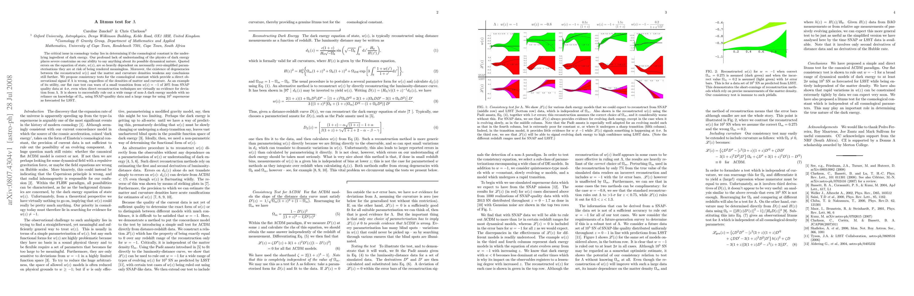 The critical issue in cosmology today lies in determining if the cosmological constant is the underlying ingredient of dark energy. Our profound lack of understanding of the physics of dark energy places severe constrains on our ability to say anything about its possible dynamical nature. Quoted errors on the equation of state, w(z), are so heavily dependent on necessarily over-simplified parameterisations they are at risk of being rendered meaningless. Moreover, the existence of degeneracies between the reconstructed w(z) and the matter and curvature densities weakens any conclusions still further. We propose consistency tests for the cosmological constant which provide a direct observational signal if Lambda is wrong, regardless of the densities of matter and curvature. As an example of its utility, our flat case test can warn of a small transition from w(z)=-1 of 20% from SNAP quality data at 4-sigma, even when direct reconstruction techniques see virtually no evidence for deviation from Lambda. It is shown to successfully rule out a wide range of non-Lambda dark energy models with no reliance on knowledge of Omega_m using SNAP-quality data and a large range for using 10^5 supernovae as forecasted for LSST.
