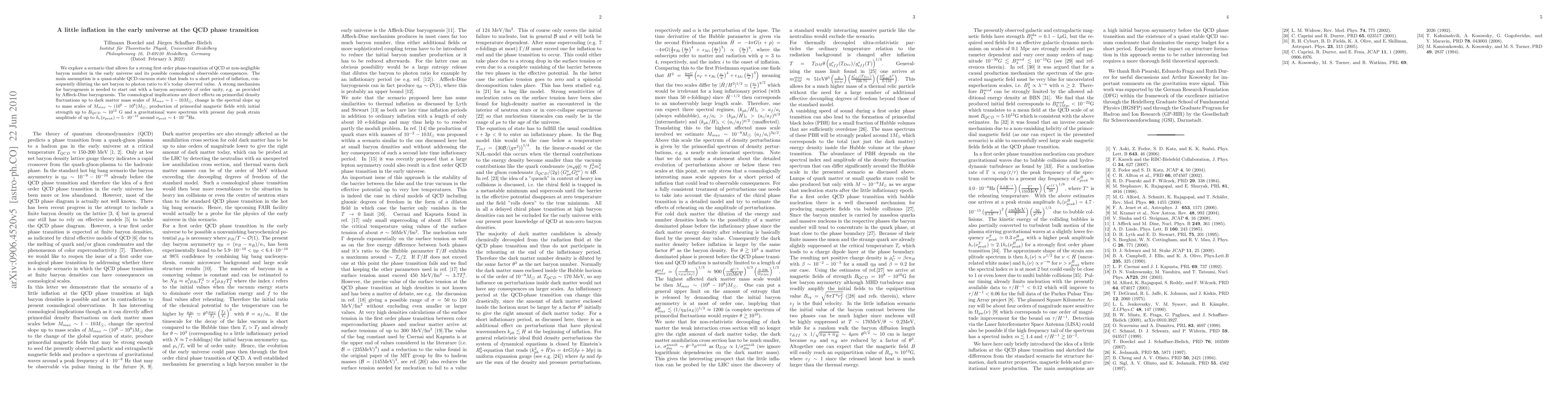 This paper explores the cosmological implications of a strong first-order QCD phase transition in the early universe, proposing a short period of inflation that dilutes the baryon asymmetry. It predicts observable effects including changes in primordial density fluctuations, spectral slope, primordial magnetic fields, and a gravitational wave spectrum.