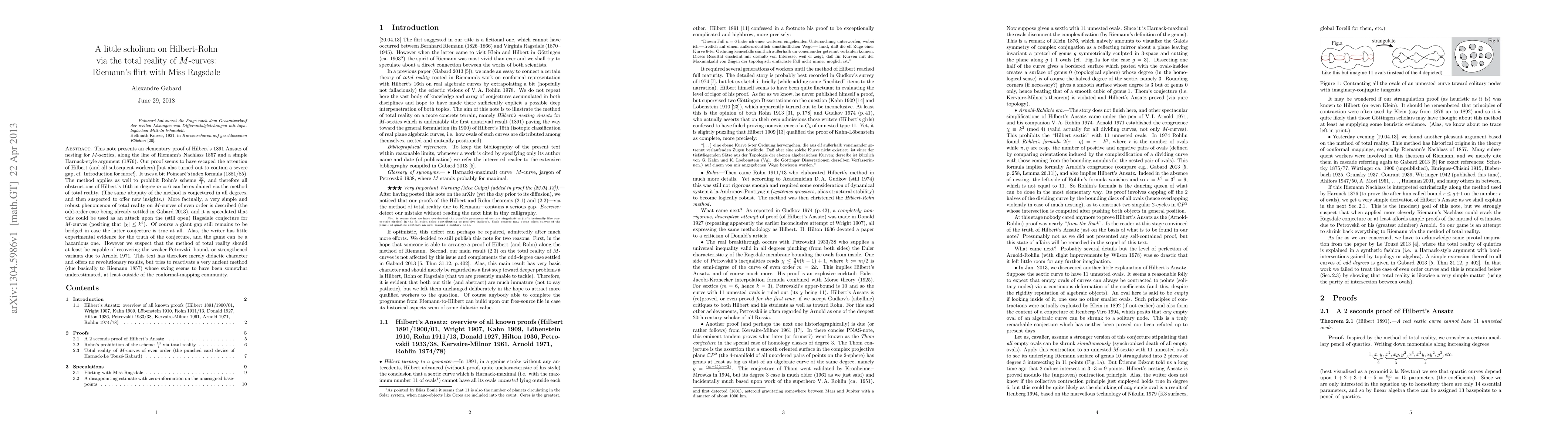 This note presents an elementary proof of Hilbert's 1891 Ansatz of nesting for $M$-sextics, along the line of Riemann's Nachlass 1857 and a simple Harnack-style argument (1876). Our proof seems to have escaped the attention of Hilbert (and all subsequent workers) [but alas turned out to contain a severe gap, cf. Introduction for more!]. It uses a bit Poincar\'e's index formula (1881/85). The method applies as well to prohibit Rohn's scheme 10/1, and therefore all obstructions of Hilbert's 16th in degree $m=6$ can be explained via the method of total reality. (The same ubiquity of the method is conjectured in all degrees, and then suspected to offer new insights.) More factually, a very simple and robust phenomenon of total reality on $M$-curves of even order is described (the odd-order case being already settled in Gabard 2013), and it is speculated that this could be used as an attack upon the (still open) Ragsdale conjecture for $M$-curves (positing that $| \chi|\le k^2$). Of course a giant gap still remains to be bridged in case the latter conjecture is true at all. Alas, the writer has little experimental evidence for the truth of the conjecture, and the game can be a hazardous one. However we suspect that the method of total reality should at least be capable of recovering the weaker Petrovskii bound, or strengthened variants due to Arnold 1971. This text has therefore merely didactic character and offers no revolutionary results, but tries to reactivate a very ancient method (due basically to Riemann 1857) whose swing seems to have been somewhat underestimated, at least outside of the conformal-mapping community.