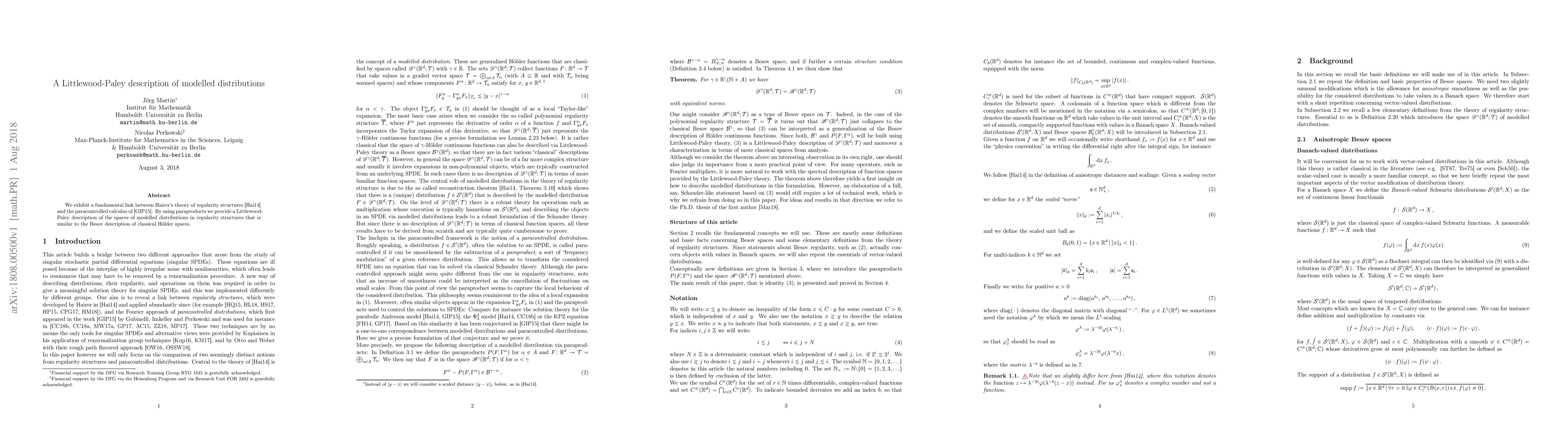The paper introduces a Littlewood-Paley description of modelled distribution spaces on regularity structures, generalizing classical Besov space characterizations.