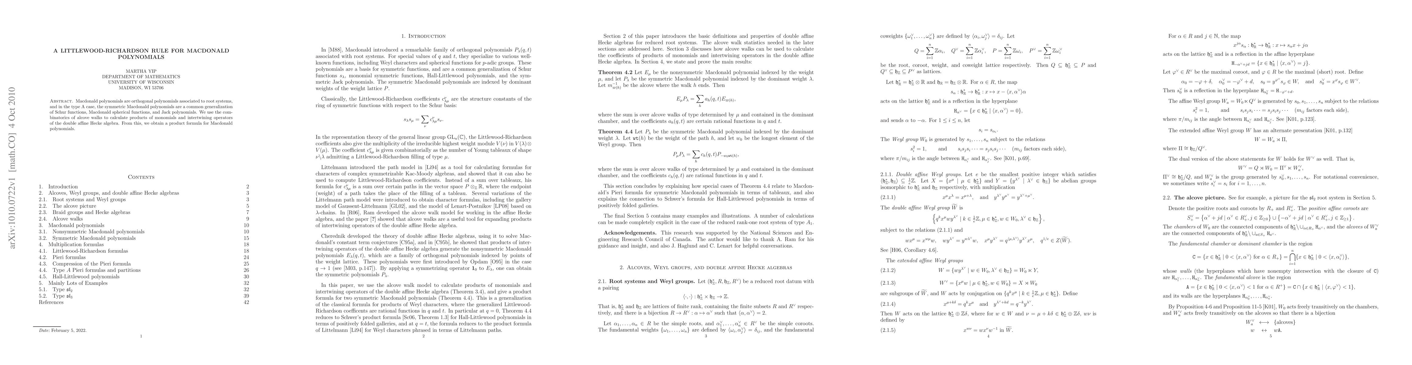 This paper derives a Littlewood-Richardson rule for Macdonald polynomials using the combinatorics of alcove walks, leading to a product formula for these polynomials of general type. The method involves analyzing monomial products and intertwining operators within the double affine Hecke algebra.