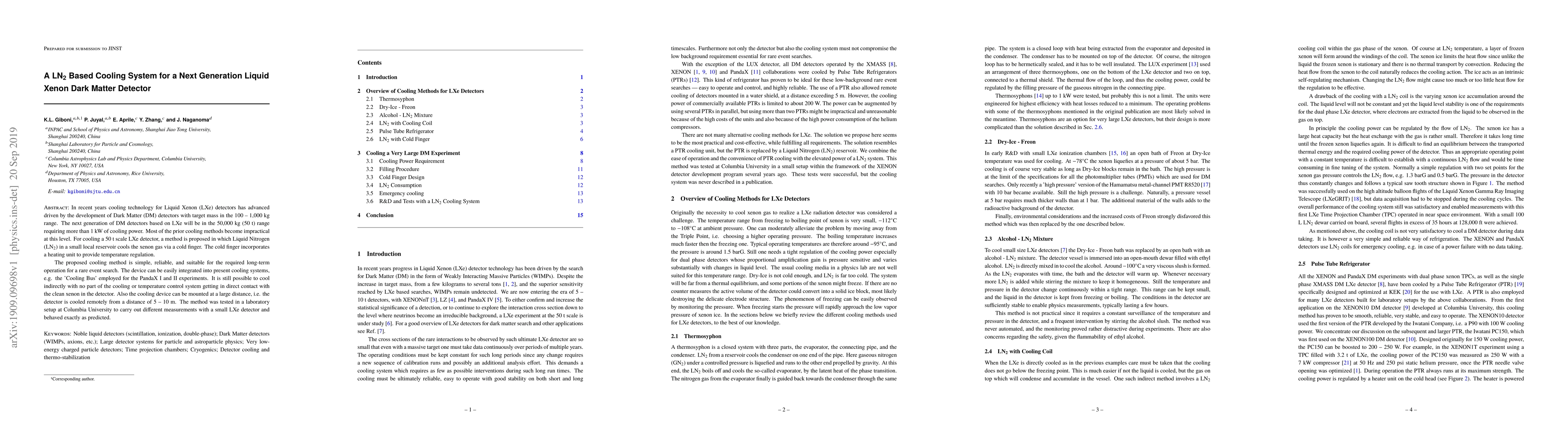 Researchers propose a LN2-based cooling system for next-generation Liquid Xenon Dark Matter detectors, which can cool a 50-ton LXe detector with over 1 kW of power, offering a simple, reliable, and remote-cooling solution.