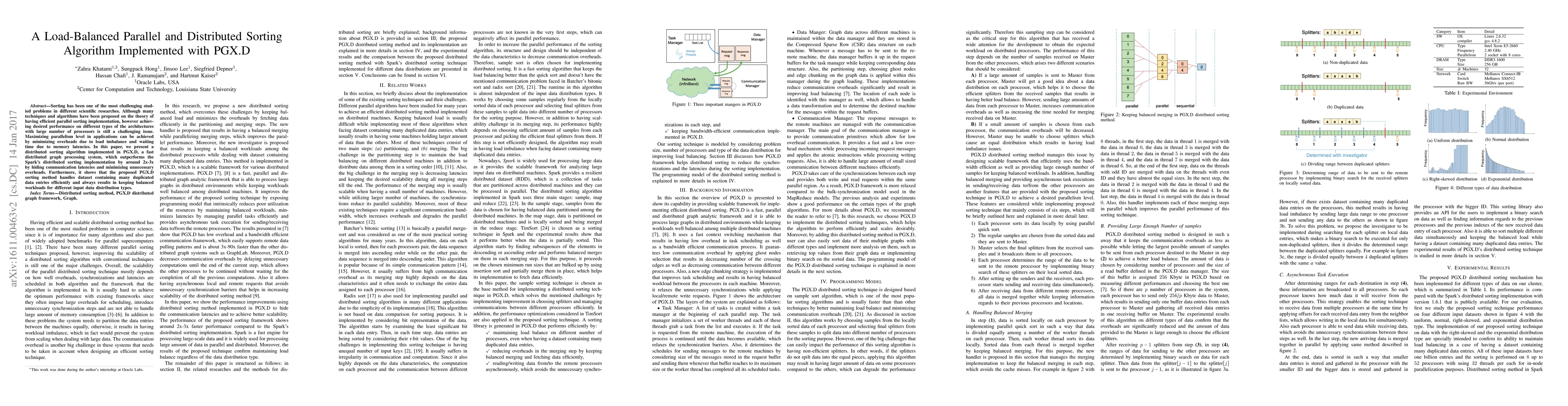 This paper introduces a load-balanced parallel sorting algorithm implemented in PGX.D, achieving 2x-3x performance improvement over Spark's sorting by minimizing overheads and balancing workloads effectively, especially for datasets with many duplicates.