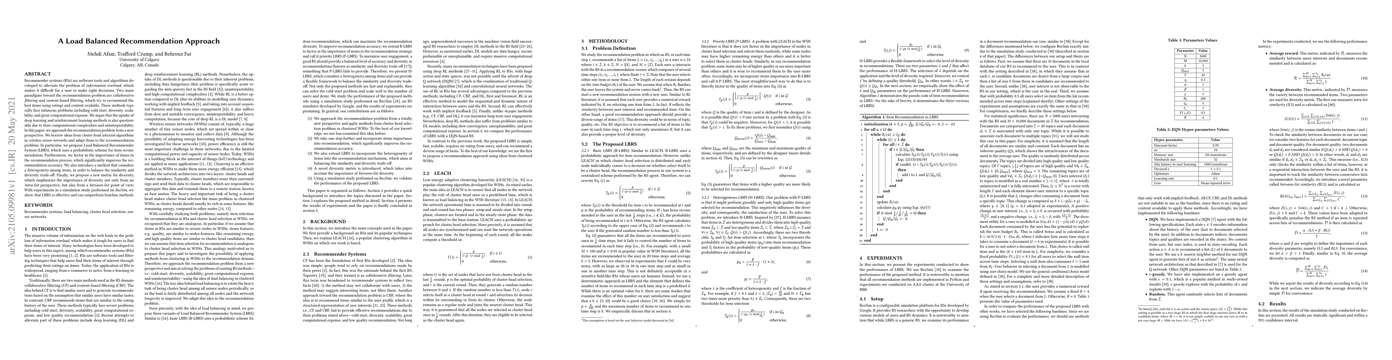 Recommender systems (RSs) are software tools and algorithms developed to alleviate the problem of information overload, which makes it difficult for a user to make right decisions. Two main paradigms toward the recommendation problem are collaborative filtering and content-based filtering, which try to recommend the best items using ratings and content available. These methods typically face infamous problems including cold-start, diversity, scalability, and great computational expense. We argue that the uptake of deep learning and reinforcement learning methods is also questionable due to their computational complexities and uninterpretability. In this paper, we approach the recommendation problem from a new prospective. We borrow ideas from cluster head selection algorithms in wireless sensor networks and adapt them to the recommendation problem. In particular, we propose Load Balanced Recommender System (LBRS), which uses a probabilistic scheme for item recommendation. Furthermore, we factor in the importance of items in the recommendation process, which significantly improves the recommendation accuracy. We also introduce a method that considers a heterogeneity among items, in order to balance the similarity and diversity trade-off. Finally, we propose a new metric for diversity, which emphasizes the importance of diversity not only from an intra-list perspective, but also from a between-list point of view. With experiments in a simulation study performed on RecSim, we show that LBRS is effective and can outperform baseline methods.