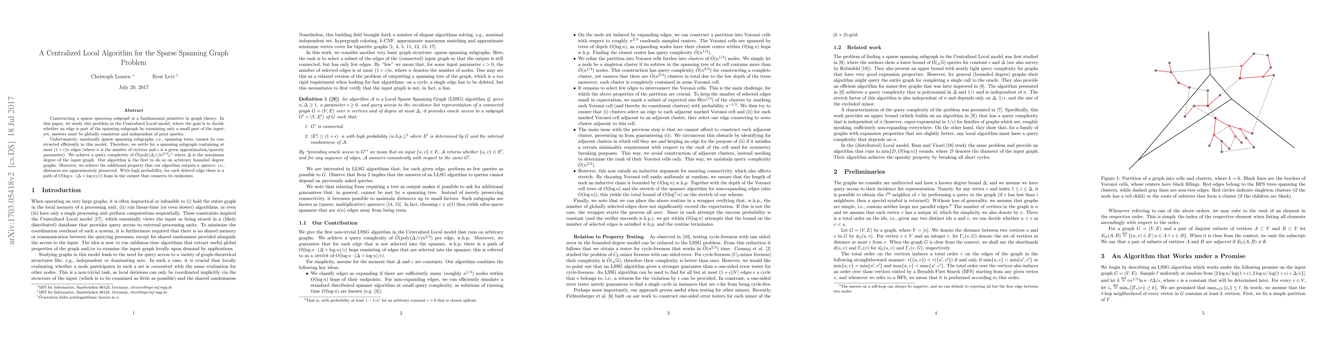 The paper introduces a novel local algorithm for constructing sparse spanning subgraphs with guaranteed query complexity and spanner properties in the Centralized Local model.