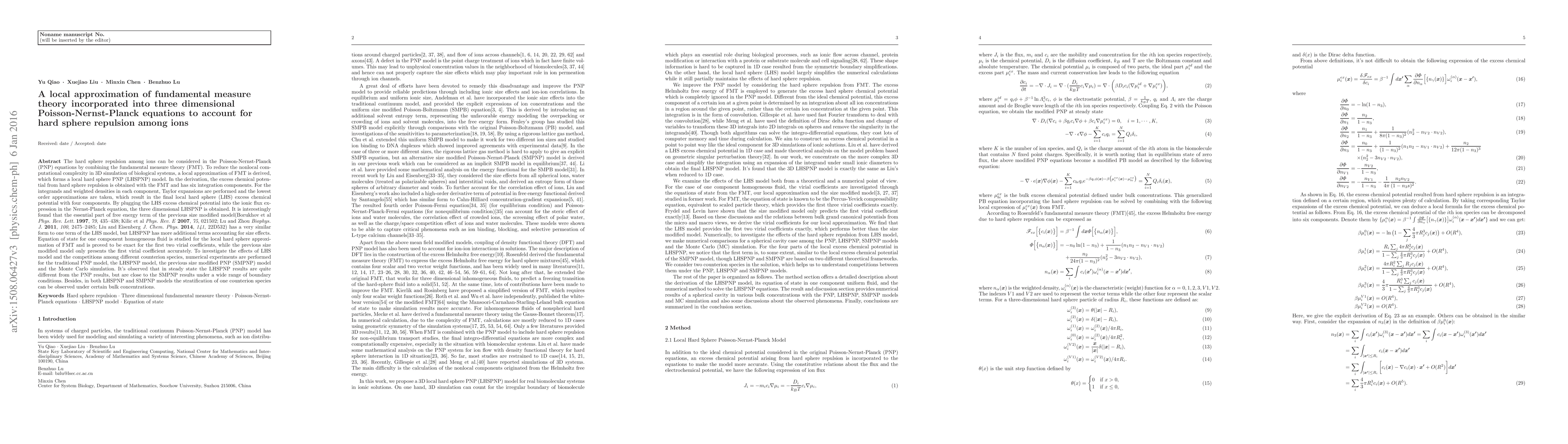 This paper develops a local approximation of fundamental measure theory (FMT) to incorporate hard sphere repulsion into three-dimensional Poisson-Nernst-Planck (PNP) equations, creating a local hard sphere PNP (LHSPNP) model. The LHSPNP model is shown to be more accurate than the previous size modified model, especially in capturing size effects and providing exact first two virial coefficients.