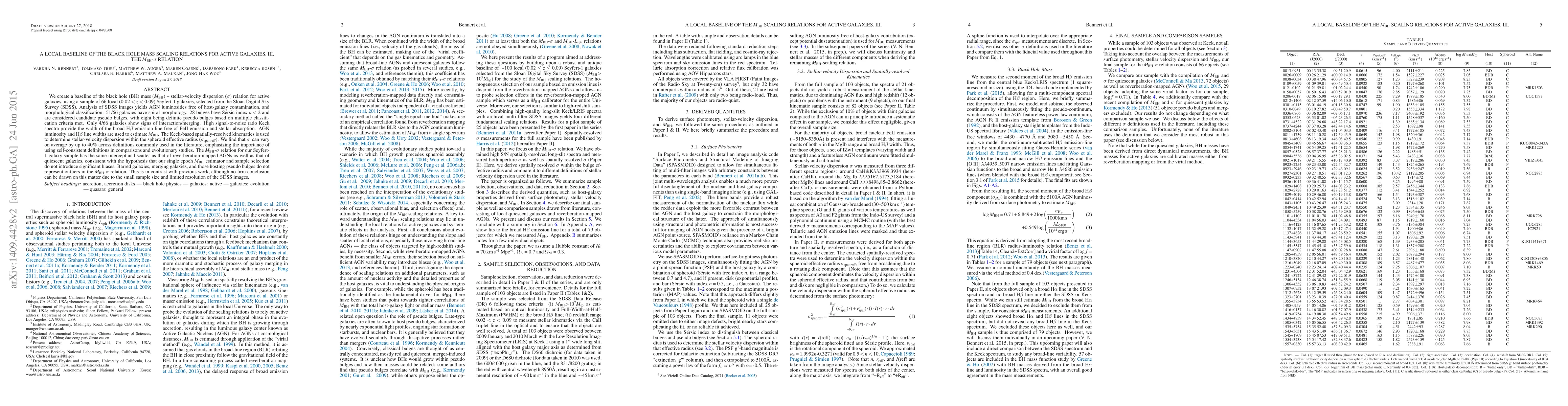 We create a baseline of the black hole (BH) mass (MBH) - stellar-velocity