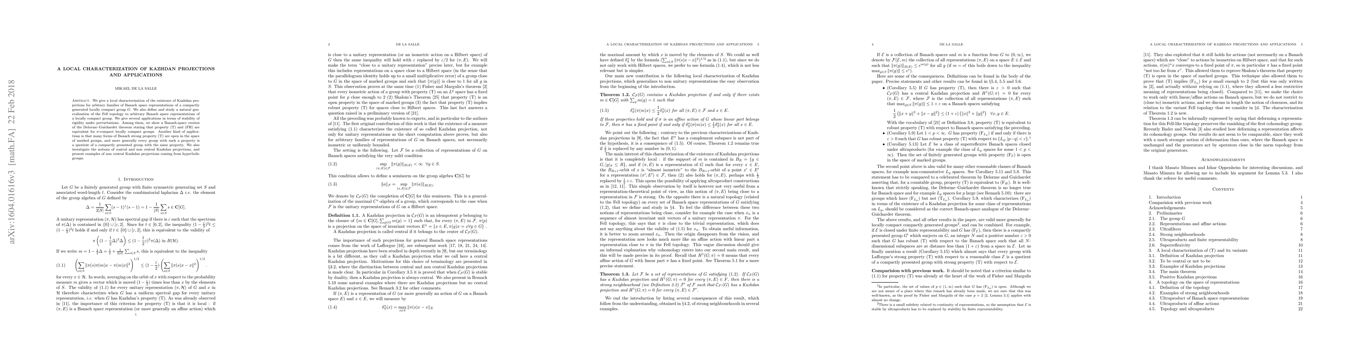 We give a local characterization of the existence of Kazhdan projections for arbitary families of Banach space representations of a compactly generated locally compact group $G$. We also define and study a natural generalization of the Fell topology to arbitrary Banach space representations of a locally compact group. We give several applications in terms of stability of rigidity under perturbations. Among them, we show a Banach-space version of the Delorme--Guichardet theorem stating that property (T) and (FH) are equivalent for $\sigma$-compact locally compact groups. Another kind of applications is that many forms of Banach strong property (T) are open in the space of marked groups, and more generally every group with such a property is a quotient of a compactly presented group with the same property. We also investigate the notions of central and non central Kazhdan projections, and present examples of non central Kazhdan projections coming from hyperbolic groups.