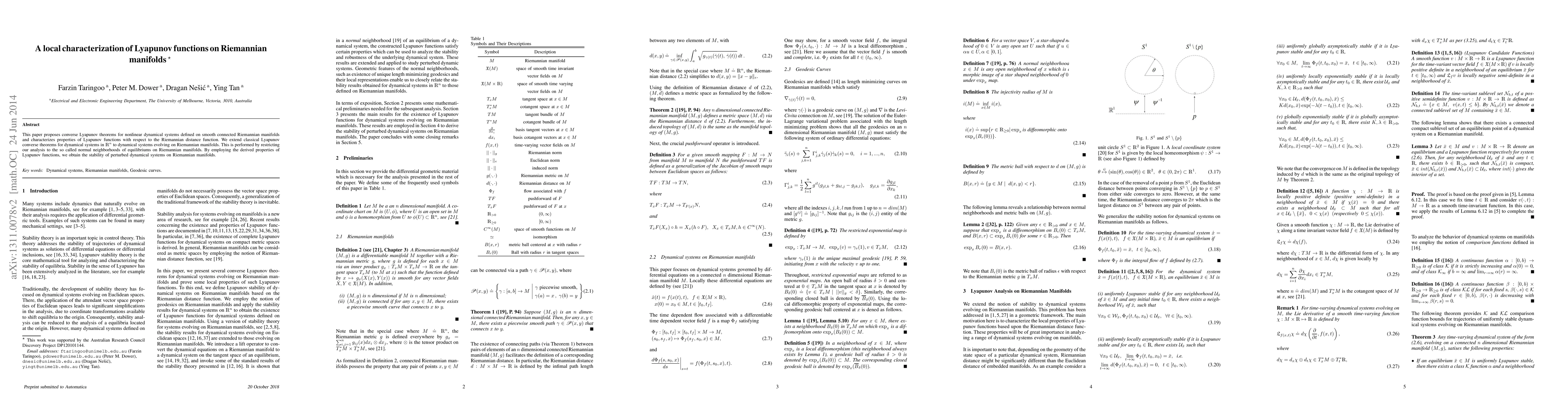 This paper develops Converse Lyapunov Theorems for nonlinear systems on Riemannian manifolds, characterizing Lyapunov functions in normal neighborhoods and extending stability to perturbed systems using differential geometry. The results leverage normal neighborhoods, injectivity radius, and bump functions on manifolds.