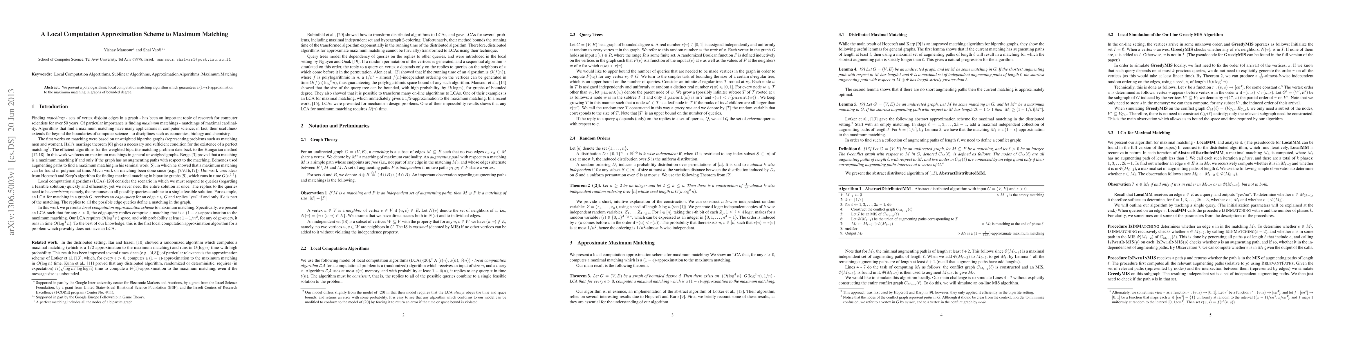 Summary: This paper introduces a polylogarithmic local computation algorithm that provides a $(1-\eps)$-approximation for the maximum matching in graphs with bounded degree, enhancing efficient approximation strategies for large-scale matching problems.