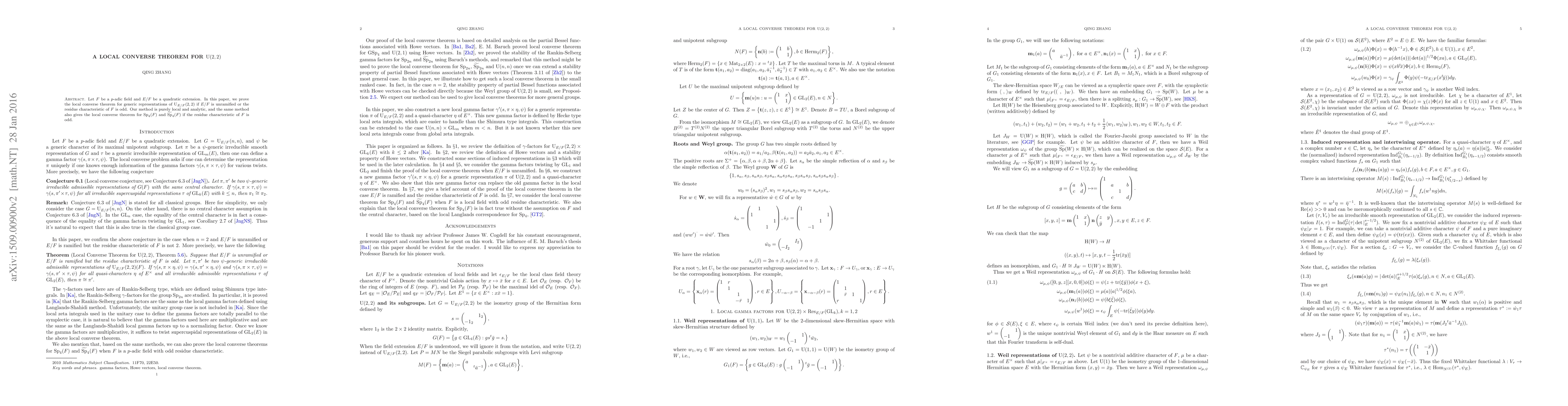 This paper proves the local converse theorem for generic representations of $\textrm{U}_{E/F}(2,2)$ when $E/F$ is unramified or the residue characteristic of $F$ is odd. The method used is purely local and analytic, and it also extends to $\textrm{Sp}_4(F)$ and $\widetilde{\textrm{Sp}}_4(F)$ in the same residue characteristic conditions.