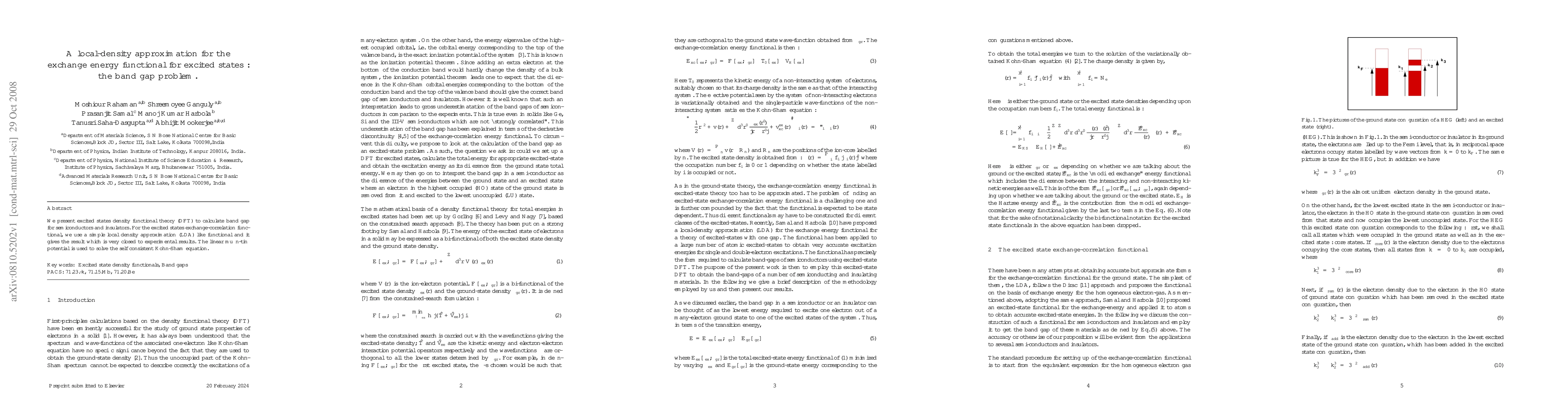 This paper introduces excited states density functional theory (DFT) to accurately calculate band gaps in semiconductors and insulators using a local density approximation (LDA) for the exchange-correlation functional, which closely matches experimental results. The linear muffin-tin potential is employed to solve the self-consistent Kohn-Sham equation.