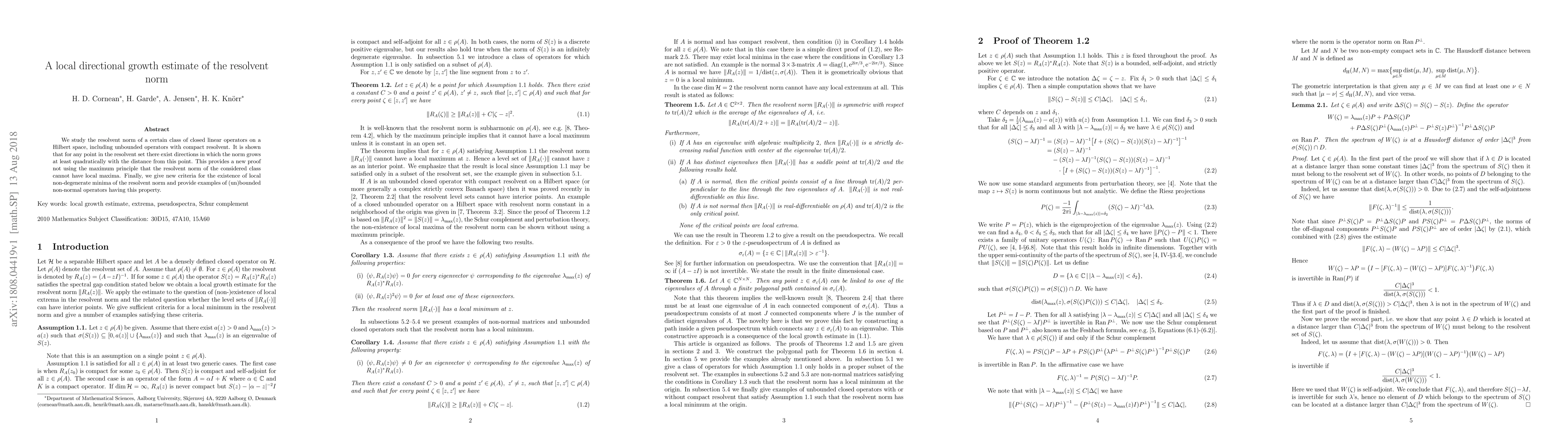 We study the resolvent norm of a certain class of closed linear operators on a Hilbert space, including unbounded operators with compact resolvent. It is shown that for any point in the resolvent set there exist directions in which the norm grows at least quadratically with the distance from this point. This provides a new proof not using the maximum principle that the resolvent norm of the considered class cannot have local maxima. Finally, we give new criteria for the existence of local non-degenerate minima of the resolvent norm and provide examples of (un)bounded non-normal operators having this property.
