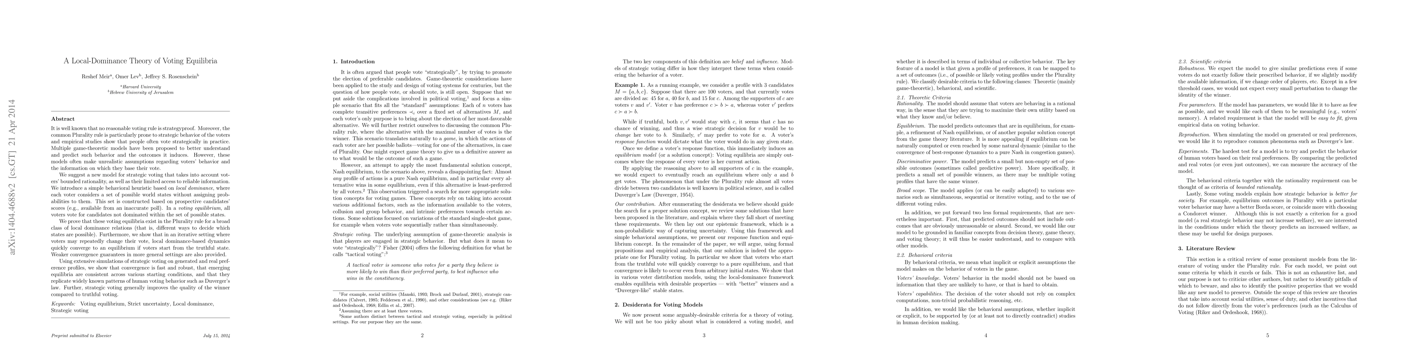 This paper proposes a new model of strategic voting based on local dominance, addressing voters' bounded rationality and limited information. It demonstrates the existence of voting equilibria under the Plurality rule, showing convergence to these equilibria in iterative settings and replicating known voting patterns, while generally improving the quality of the elected winner.