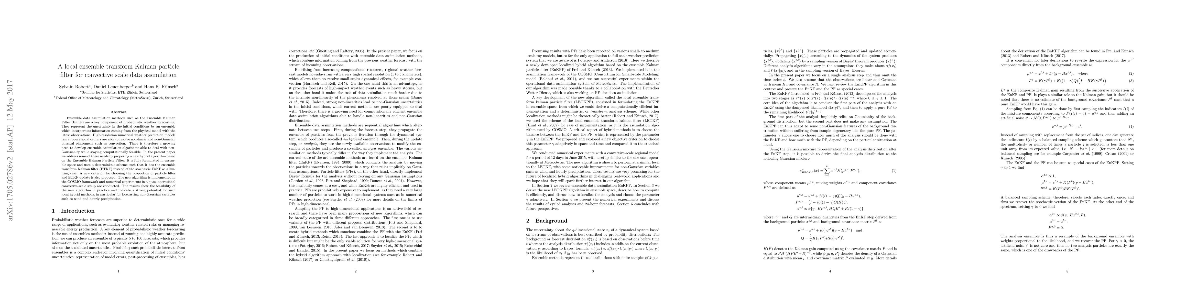 This paper proposes a hybrid Ensemble Kalman Particle Filter (EnKPF) algorithm for convective-scale data assimilation, combining the Ensemble Transform Kalman Filter (ETKF) for efficiency and the EnKPF for handling non-Gaussian phenomena. The new method shows promising results in quasi-operational setups for forecasting non-Gaussian variables like wind and precipitation.