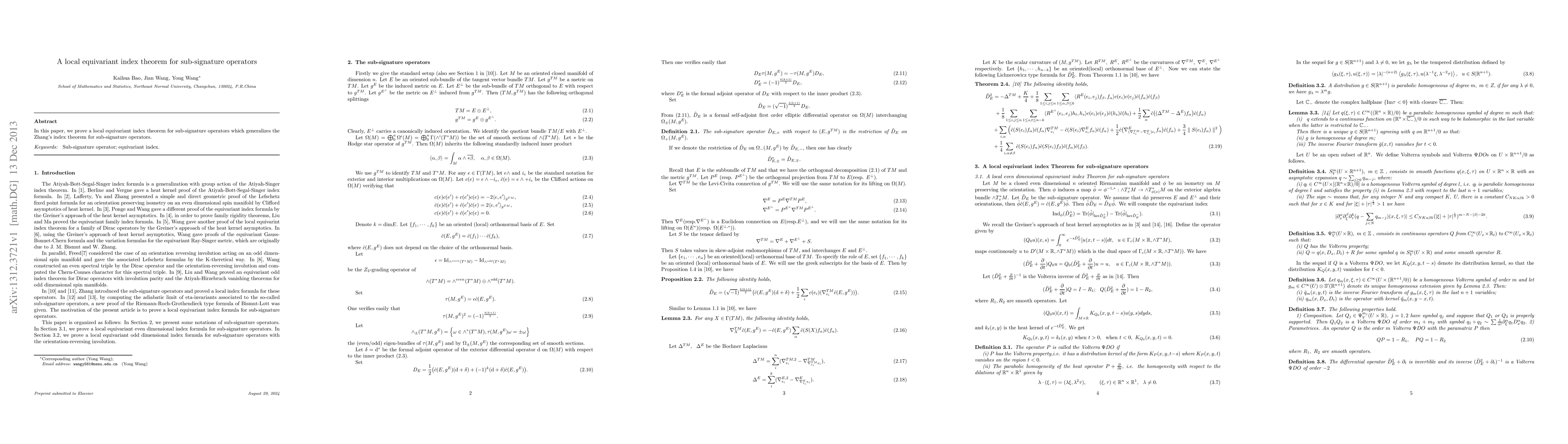 Summary: This paper establishes a local equivariant index theorem for sub-signature operators, extending the foundational work of Zhang's index theorem in this area. The result provides a generalized framework for understanding these operators within an equivariant context.